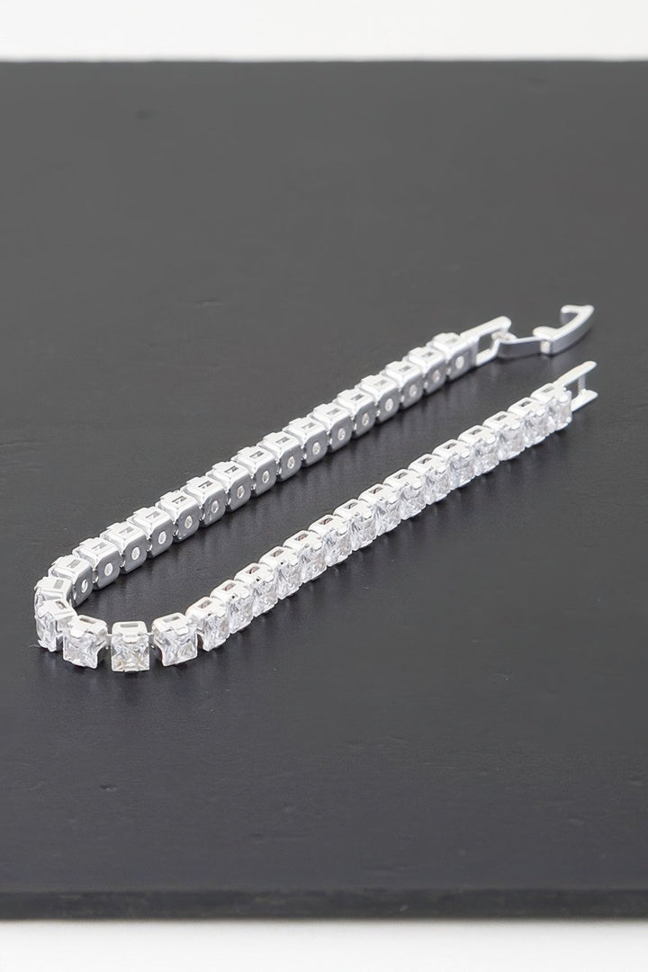 Add a touch of understated elegance to your jewelry collection with our Minimal Cubic Zirconia Bracelet, a timeless piece that combines minimalist design with sparkling beauty. Crafted to perfection, this bracelet is designed to elevate any outfit with its subtle yet stunning details. Key Features: Fabric: The bracelet features a high-quality gold-plated or silver-plated band, set with clear cubic zirconia stones that provide a delicate yet dazzling sparkle. Fit: Measuring approximately 2.4 x 2.4", this bracelet offers a comfortable and adjustable fit for most wrist sizes, ensuring a secure and stylish wear. Color Options: Available in Gold with Clear cubic zirconia stones and Silver with Clear stones, offering two elegant options to suit different preferences. Sizes: One size fits most, with an adjustable design to ensure a perfect fit for any wrist. Design: The minimalist design showcases a row of cubic zirconia stones, adding a hint of sparkle without overwhelming your look. Versatile Styling: Perfect for layering with other bracelets or wearing alone as a statement piece, this bracelet complements both casual and formal outfits. Product Details: Comfortable All-Day Wear: The lightweight design ensures that the Minimal Cubic Zirconia Bracelet can be worn comfortably from day to night. Quality Craftsmanship: Made with premium materials, this bracelet is built to last, maintaining its shine and elegance over time. Why Choose Minimal Cubic Zirconia Bracelet This bracelet stands out for its simple yet sophisticated design, offering just the right amount of sparkle. It's a perfect addition to your jewelry collection for adding a touch of refinement to any outfit. Ideal Occasions: Perfect for daily wear, formal events, or as a thoughtful gift for someone who loves elegant, minimalist accessories. Customer Reviews: This bracelet is so dainty and beautiful. The cubic zirconia stones sparkle just the right amount! L. W. I love how simple yet stunning this bracelet is. It's perfect for adding a touch of elegance to any outfit. K. J. Such a beautiful bracelet! It fits perfectly and looks so chic with everything I wear. S. P. Size Guide: For accurate sizing guidance, please review our size chart available on the website. Shipping and Returns: Fast Shipping: We offer speedy delivery to your doorstep. Hassle-Free Returns: If you're not completely satisfied, our flexible return policy ensures your peace of mind. Add timeless elegance to your jewelry collection with the Minimal Cubic Zirconia Bracelet. Add it to your cart today and enjoy a piece that brings sparkle and sophistication to every look! Minimal Cubic Zirconia Bracelet