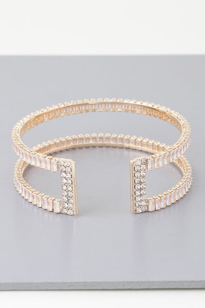 Elevate your jewelry collection with our Crystal Cubic Zirconia Bracelet, a stunning accessory that combines timeless elegance with modern sparkle. Featuring a design that captures the light beautifully, this bracelet is perfect for adding a touch of sophistication to any look. Key Features: Fabric: The bracelet is crafted with a high-quality gold-plated or silver-plated band, adorned with clear cubic zirconia stones that create a brilliant and radiant shine. Fit: Measuring approximately 2.2 x 2.2", this bracelet fits most wrist sizes comfortably with an adjustable design that ensures a secure and stylish fit. Color Options: Available in Gold with Clear cubic zirconia stones and Silver with Clear stones, offering two classic, versatile options for every occasion. Sizes: One size fits most, with an adjustable design to provide a perfect fit for any wrist. Design: Featuring a sleek band adorned with radiant cubic zirconia stones, the Crystal Cubic Zirconia Bracelet offers a sophisticated and eye-catching look. Versatile Styling: Perfect for everyday wear or as a statement piece for evening events, this bracelet adds a refined touch to both casual and formal outfits. Product Details: Comfortable All-Day Wear: The lightweight design ensures the Crystal Cubic Zirconia Bracelet can be worn comfortably throughout the day or evening. Quality Craftsmanship: Made with premium materials, this bracelet is designed to maintain its beautiful shine and durability over time. Why Choose Crystal Cubic Zirconia Bracelet With its luxurious sparkle and sleek design, this bracelet is the ideal accessory for adding elegance to any look. Whether worn alone or stacked with other pieces, it is sure to stand out in any collection. Ideal Occasions: Perfect for formal events, special celebrations, or as an elegant addition to your everyday wear. Customer Reviews: The cubic zirconia stones shine beautifully! It's a perfect, delicate bracelet for any occasion. S. T. I wear this bracelet all the time! The quality is amazing, and it goes with everything. L. R. Such a stunning piece! It looks gorgeous in gold, and the sparkle is incredible. J. K. Size Guide: For accurate sizing guidance, please review our size chart available on the website. Shipping and Returns: Fast Shipping: We offer speedy delivery to your doorstep. Hassle-Free Returns: If you're not completely satisfied, our flexible return policy ensures your peace of mind. Add a radiant touch to your jewelry collection with the Crystal Cubic Zirconia Bracelet. Add it to your cart today and enjoy an accessory that brings sparkle and sophistication to every occasion! Crystal Cubic Zirconia Bracelet