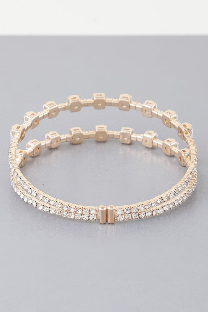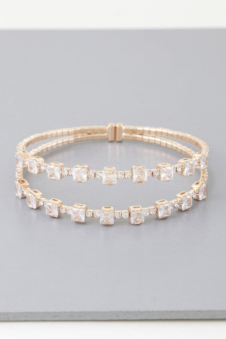 Add a touch of luxury to your collection with our Double Cubic Zirconia Bracelet, a beautiful piece that combines elegance and sparkle. Featuring two brilliant cubic zirconia stones, this bracelet exudes sophistication and is designed to enhance your style effortlessly. Key Features: Fabric: The bracelet is crafted with a high-quality gold-plated or silver-plated band, adorned with two clear cubic zirconia stones that create a stunning, radiant effect. Fit: Measuring approximately 2.2 x 2.2", this bracelet is designed to fit most wrist sizes comfortably, with an adjustable design that ensures a secure and stylish fit. Color Options: Available in Gold with Clear cubic zirconia stones and Silver with Clear stones, providing timeless options that complement any style. Sizes: One size fits most, with an adjustable design that allows for a perfect fit for any wrist. Design: Featuring two prominent cubic zirconia stones, the design is sleek and minimalist, offering a chic and refined look. Versatile Styling: This bracelet is perfect for both casual and formal occasions, whether worn alone for a subtle statement or layered with other accessories for a more dramatic effect. Product Details: Comfortable All-Day Wear: The lightweight and adjustable design ensures the Double Cubic Zirconia Bracelet can be worn comfortably from day to night. Quality Craftsmanship: Made from premium materials, this bracelet is designed to maintain its brilliance and durability, ensuring long-lasting wear. Why Choose Double Cubic Zirconia Bracelet This bracelet offers a perfect blend of elegance and simplicity, with two sparkling cubic zirconia stones that create a timeless and luxurious look. It's the ideal piece to add a touch of glamour to any outfit. Ideal Occasions: Perfect for adding subtle elegance to your everyday look, or as a statement piece for special occasions such as evening events, parties, or celebrations. Customer Reviews: I absolutely love this bracelet! The cubic zirconia stones sparkle beautifully and the design is so elegant. K. G. This bracelet is a perfect balance of understated elegance and glamour. I wear it every day! R. A. The quality is amazing, and It's so versatile. It looks fantastic with both gold and silver tones! P. S. Size Guide: For accurate sizing guidance, please review our size chart available on the website. Shipping and Returns: Fast Shipping: We offer speedy delivery to your doorstep. Hassle-Free Returns: If you're not completely satisfied, our flexible return policy ensures your peace of mind. Add the Double Cubic Zirconia Bracelet to your jewelry collection today and enjoy a beautiful, radiant accessory that elevates any outfit with effortless style! Double Cubic Zirconia Bracelet