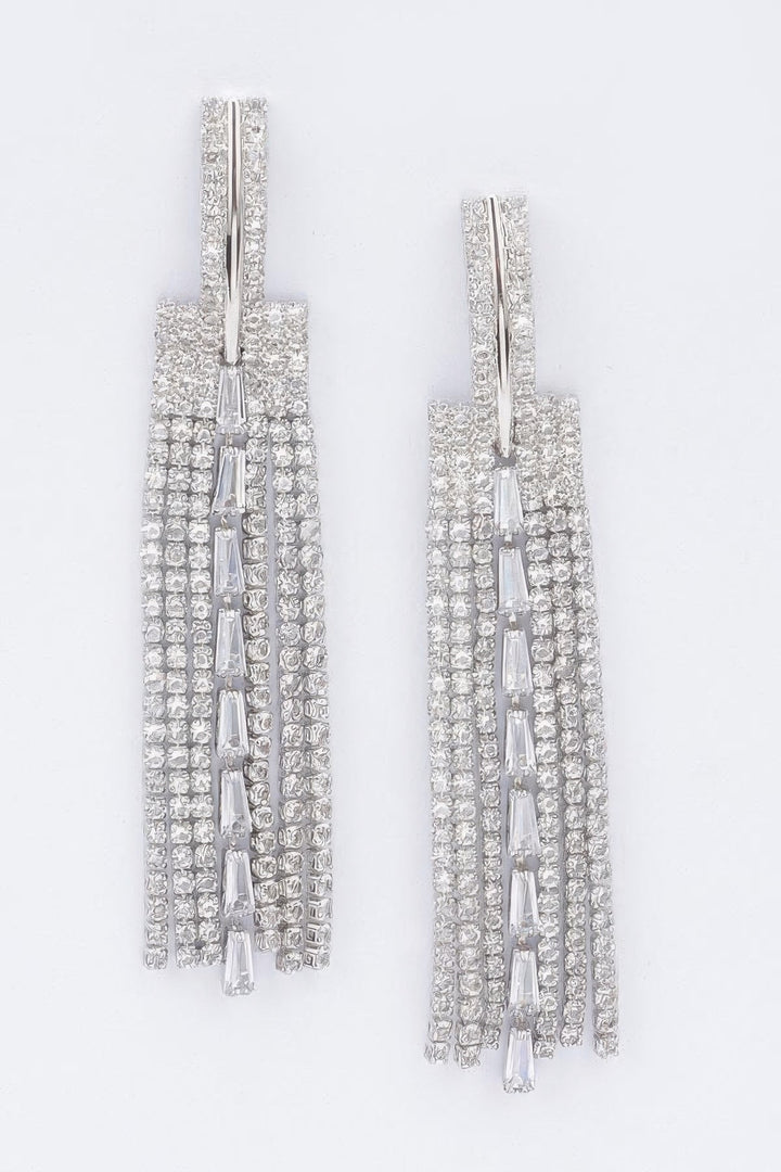 Add a touch of glamour to your jewelry collection with our Rhinestone Earring, designed to sparkle and shine with every move. Perfect for elevating any outfit, these earrings offer a blend of elegance and sophisticated style. Key Features: Fabric: Rhinestone and Metal Fit: One-size, designed to sit comfortably on the earlobe Color Options: Gold Clear, Silver Clear Sizes: 0.65 x 3.5" Approx Design: Featuring a stunning row of sparkling rhinestones, these earrings catch the light beautifully, adding a dazzling effect to any look Versatile Styling: Perfect for special events, evening outings, or anytime you want to add a bit of sparkle to your ensemble Product Details: Comfortable All-Day Wear: Lightweight and designed for maximum comfort, these earrings can be worn from day to night without any discomfort. Quality Craftsmanship: Made with high-quality rhinestones and a sturdy metal base, these earrings are built to last while adding a touch of luxury to your outfit. Why Choose Rhinestone Earring With their timeless design and sparkling beauty, these earrings are a perfect addition to any jewelry collection. The rhinestone detailing ensures they shine bright, making you the center of attention wherever you go. Ideal Occasions: Perfect for formal events, evening parties, weddings, or any occasion where you want to stand out with a bit of sparkle. Customer Reviews: These earrings are absolutely stunning! They look so glamorous and are the perfect size. R. Thompson I wore these to a wedding and got so many compliments. They sparkle beautifully. J. Harris A great pair of earrings for any special occasion. They're comfortable and elegant. L. Green Size Guide: For accurate sizing guidance, please review our size chart available on the website. Shipping and Returns: Fast Shipping: We offer speedy delivery to your doorstep. Hassle-Free Returns: If you're not completely satisfied, our flexible return policy ensures your peace of mind. Add the Rhinestone Earring to your collection today and experience the perfect blend of luxury and style! Rhinestone Earring