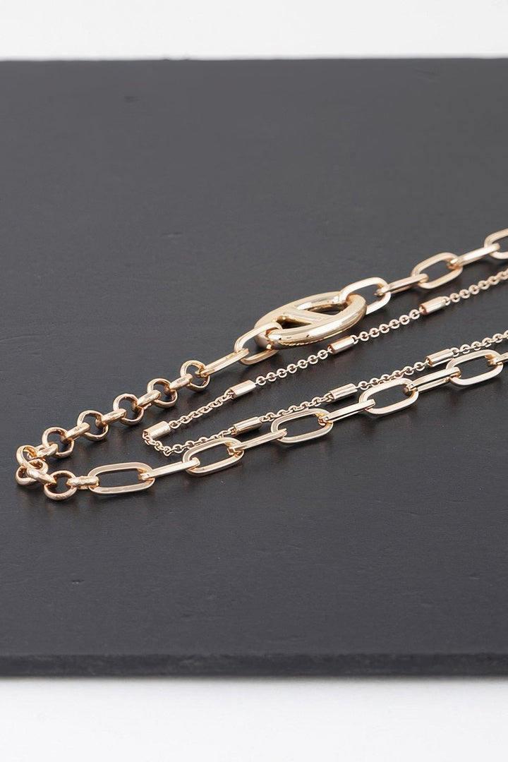 Add a bold yet elegant touch to your jewelry collection with our Double Link Chain Choker Necklace. Designed for those who appreciate modern style with a hint of sophistication, this necklace is the perfect accessory to complete any look. Key Features: Fabric: Metal Fit: Adjustable, designed to comfortably fit most neck sizes Color Options: Gold Sizes: 16" Approx Design: Featuring a double link chain design, this choker creates a sleek, layered look that stands out on its own or pairs perfectly with other necklaces Versatile Styling: This choker is ideal for adding a statement to casual, evening, or even formal outfits, offering a refined, chic appeal Product Details: Comfortable All-Day Wear: Lightweight and designed for comfort, this necklace sits securely and comfortably around the neck, making it perfect for all-day wear. Quality Craftsmanship: Made from durable metal, this choker is designed to maintain its shine and finish, offering both longevity and style. Why Choose Double Link Chain Choker Necklace This necklace combines modern design with timeless elegance, making it a must-have for those looking to add a bold yet stylish accessory to their wardrobe. Its versatility allows it to be worn with a variety of looks, from casual to more sophisticated outfits. Ideal Occasions: Perfect for evenings out, casual chic looks, or layering with other necklaces for a more personalized style. Customer Reviews: A sleek and modern choker that adds so much to my outfits. Love it! R. Harris Such a great statement piece! It goes with everything and is so comfortable to wear. J. Baker A perfect addition to my collection. It's simple yet elegant, and I get compliments every time I wear it. A. Taylor Size Guide: For accurate sizing guidance, please review our size chart available on the website. Shipping and Returns: Fast Shipping: We offer speedy delivery to your doorstep. Hassle-Free Returns: If you're not completely satisfied, our flexible return policy ensures your peace of mind. Add the Double Link Chain Choker Necklace to your collection now and elevate your style with this modern, elegant accessory! Double Link Chain Choker Necklace