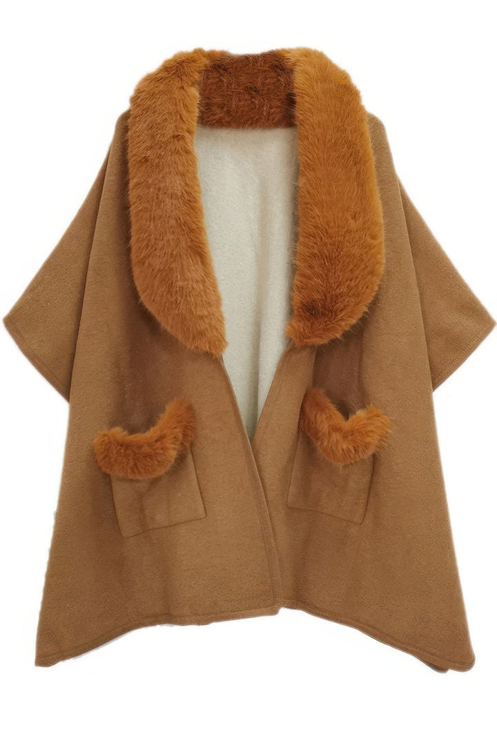 Elevate your wardrobe with our Faux Fur Collar Kimono, a luxurious and stylish piece that combines elegance and warmth. Crafted with care and attention to detail, this kimono is designed to make you feel chic and cozy all at once. Key Features: Fabric: 100% Polyester, offering durability and a soft touch Fit: Loose, relaxed fit for a comfortable and flowing silhouette Color Options: Available in Camel and Gray, offering versatile choices to complement any outfit Sizes: One size, measuring 33.46" in length and 43.3" in width Design: Features a stunning faux fur collar, adding a touch of glamour to the traditional kimono shape Versatile Styling: Perfect for layering over dresses or casual outfits, this kimono can elevate any look, whether you're heading to a special event or enjoying a night out Product Details: Comfortable All-Day Wear: The Faux Fur Collar Kimono is designed for both comfort and style, making it a perfect piece to wear throughout the day and night. Quality Craftsmanship: Crafted with 100% polyester, the fabric is soft to the touch and durable, ensuring it lasts through many seasons. The faux fur collar adds a touch of sophistication and warmth. Why Choose Faux Fur Collar Kimono This kimono stands out with its luxurious faux fur collar, offering both style and comfort. Its flowing design and soft, durable fabric make it a versatile addition to any wardrobe, whether you're dressing up or keeping it casual. Ideal Occasions: Perfect for casual outings, cozy evenings, or a touch of elegance at a dinner party. The Faux Fur Collar Kimono adds a sophisticated flair to any look, making it ideal for a variety of occasions. Customer Reviews: "I absolutely love the faux fur collar on this kimono. It adds such a chic touch!" - Emily R. "This kimono is perfect for dressing up a simple outfit. So cozy and stylish!" - Michael S. "The Camel color is gorgeous, and the faux fur feels so luxurious. Definitely a must-have!" - Sophia W. Size Guide: One size, measuring 33.46" x 43.3" Shipping and Returns: Fast Shipping: We offer speedy delivery to your doorstep. Hassle-Free Returns: If you're not completely satisfied, our flexible return policy ensures your peace of mind. Add the Faux Fur Collar Kimono to your cart now and enjoy the perfect blend of comfort, warmth, and sophisticated style! Faux Fur Collar Kimono