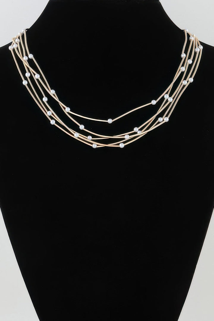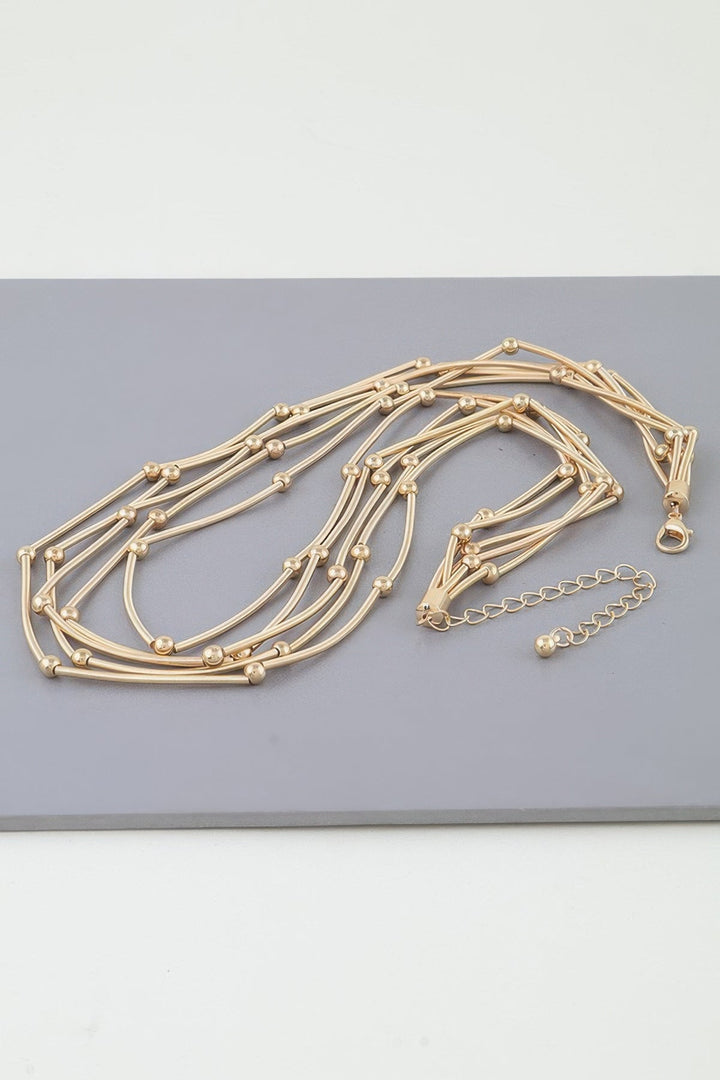 Add a touch of elegance and sophistication to your look with our Multi Pillar Beaded Necklace. This stunning piece combines modern design with timeless style, perfect for elevating any outfit from casual to formal. Key Features: Fabric: Crafted with high-quality beads and metal accents for a polished finish Fit: 16" approx. Color Options: Gold, Silver Design: Features a unique multi-pillar design, creating a statement piece that's both bold and refined Versatile Styling: Perfect for layering with other jewelry or wearing alone to add a touch of glamour to any outfit Product Details: Comfortable All-Day Wear: Lightweight and easy to wear, this necklace adds style without weighing you down. Quality Craftsmanship: Made with attention to detail, ensuring durability and a lasting, elegant look. Why Choose Multi Pillar Beaded Necklace This necklace stands out for its eye-catching multi-pillar design and sleek metal accents. The versatility of this piece allows it to complement both casual and dressy outfits, making it an essential addition to your jewelry collection. Ideal Occasions: Perfect for daily wear, date nights, cocktail parties, or any special event where you want to add a sophisticated touch. Customer Reviews: "The gold version of this necklace is so beautiful! It goes with everything." Emma G. "I love the unique pillar design It's such a standout piece!" Olivia T. "A perfect necklace to wear with both casual and formal outfits. So versatile and stylish." Ava S. Size Guide: For accurate sizing guidance, please review our size chart available on the website. Shipping and Returns: Fast Shipping: We offer speedy delivery to your doorstep. Hassle-Free Returns: If you're not completely satisfied, our flexible return policy ensures your peace of mind. Add elegance and style to your jewelry collection with the Multi Pillar Beaded Necklace. Add it to your cart now and experience the perfect blend of modern design and timeless beauty! Multi Pillar Beaded Necklace