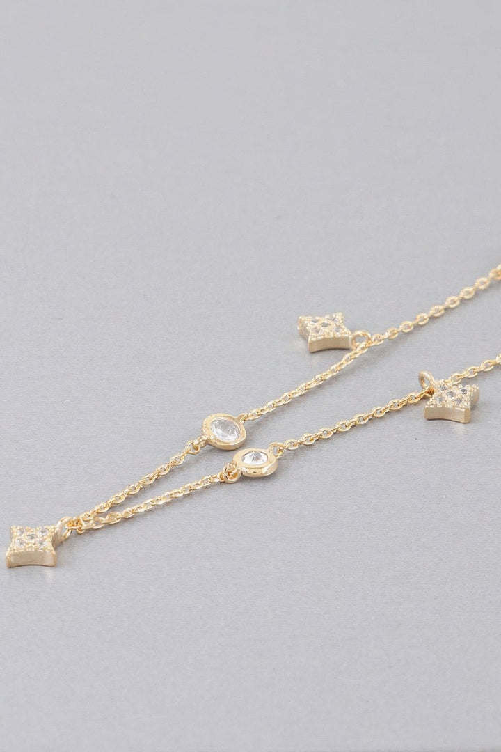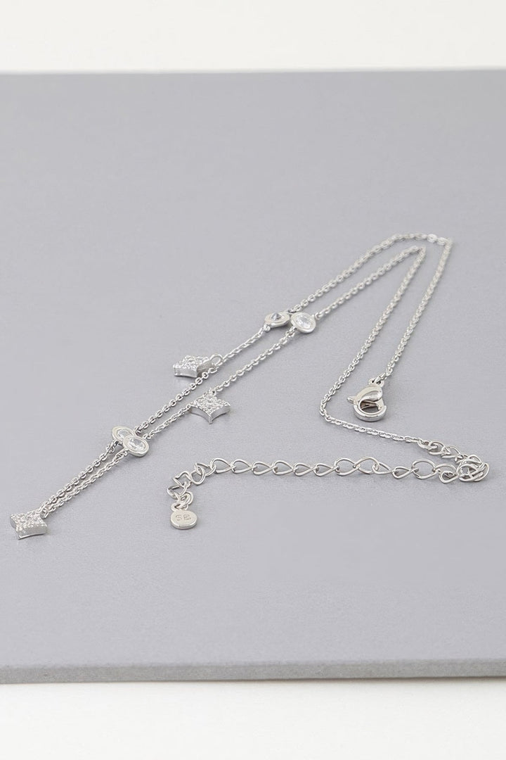 Elevate your accessory game with our Multi Starry Sky Charms Necklace, a stunning piece that effortlessly combines elegance and charm. Crafted with care and precision, this necklace is designed to add a touch of celestial beauty to any outfit, making you feel both stylish and sophisticated. Key Features: Fabric: Made with a blend of high-quality metal alloy and clear crystals for a shimmering effect. Fit: 12" Approx length, designed to sit delicately around your neck for a flattering fit. Color Options: Gold Clear, Silver Clear Sizes: One size Design: This necklace features multi-star charms, each adorned with clear crystals, capturing the essence of a starry night sky. Versatile Styling: The timeless design makes it ideal for dressing up both casual and formal outfits. Perfect for layering or wearing solo to make a statement. Product Details: Comfortable All-Day Wear: The lightweight construction of the Multi Starry Sky Charms Necklace ensures comfort, whether you wear it all day or just for an evening out. Quality Craftsmanship: Each necklace is carefully crafted with attention to detail, ensuring durability while maintaining its radiant sparkle. Why Choose Multi Starry Sky Charms Necklace The starry sky design combined with sparkling clear crystals creates a look that's both delicate and dazzling. This piece is perfect for adding a touch of elegance to any outfit, whether It's a special occasion or a daily accessory. Ideal Occasions: Perfect for date nights, evening outings, or adding a bit of sparkle to your daily wear. Customer Reviews: "I absolutely love this necklace. It's perfect for layering with other pieces." Emma S. "Such a beautiful design, it really adds a special touch to any outfit!" Sarah L. "The stars are so delicate, and it shines beautifully in the light. I wear it all the time." Olivia M. Size Guide: For accurate sizing guidance, please review our size chart available on the website. Shipping and Returns: Fast Shipping: We offer speedy delivery to your doorstep. Hassle-Free Returns: If you're not completely satisfied, our flexible return policy ensures your peace of mind. Get ready to shine and add a little starry magic to your look with the Multi Starry Sky Charms Necklace. Add it to your cart now and experience the perfect blend of charm and elegance! Multi Starry Sky Charms Necklace