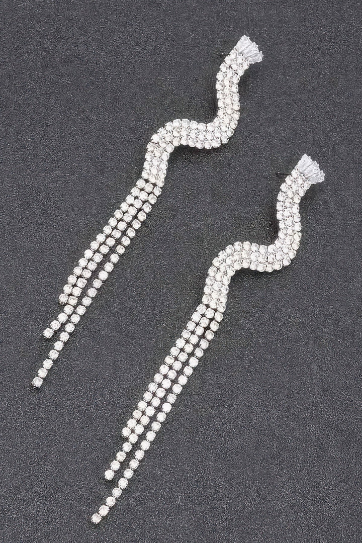 Add an extra touch of glamour to your look with our Rhinestone Fringe Earring, designed to dazzle and captivate with every movement. These earrings offer the perfect combination of sparkle and elegance, making them an essential accessory for those who love to stand out. Key Features: Material: Made with high-quality rhinestones set in either gold or silver, these earrings radiate brilliance and shine. Size: Approximate dimensions of 0.25" in width and 4.75" in length, offering a striking, elongated fringe design. Color Options: Available in both gold with clear rhinestones and silver with clear rhinestones, each providing a chic and versatile finish to suit any occasion. Design: The fringe design of the earrings creates dynamic movement and enhances the sparkling effect of the rhinestones, making them perfect for adding drama to any outfit. Versatile Styling: Ideal for pairing with evening wear, weddings, parties, or as an eye-catching accessory for a night out. Product Details: Comfortable All-Day Wear: Designed to be lightweight, these earrings can be worn comfortably for long periods without causing discomfort. Quality Craftsmanship: Each rhinestone is securely set to ensure long-lasting sparkle and durability. Why Choose Rhinestone Fringe Earring The Rhinestone Fringe Earring is perfect for adding a touch of luxury to your look. With their elegant fringe design and radiant rhinestones, these earrings are an effortless way to elevate any outfit and make a lasting impression. Ideal Occasions: Perfect for formal events, evening outings, or any occasion where you want to add a dazzling, dramatic touch. Customer Reviews: "These earrings are absolutely stunning! They catch the light beautifully and add so much glam to my look." Mia L. "The fringe design is unique and fun, and they're surprisingly comfortable to wear!" Kate M. "I love how these earrings stand out. they're perfect for a night out or any special occasion." Olivia P. Size Guide: For accurate sizing guidance, please refer to the product details available on the website. Shipping and Returns: Fast Shipping: We offer speedy delivery to your doorstep. Hassle-Free Returns: If you're not completely satisfied, our flexible return policy ensures your peace of mind. Make a statement with the Rhinestone Fringe Earring today and add a touch of sparkle and sophistication to your collection! Rhinestone Fringe Earring