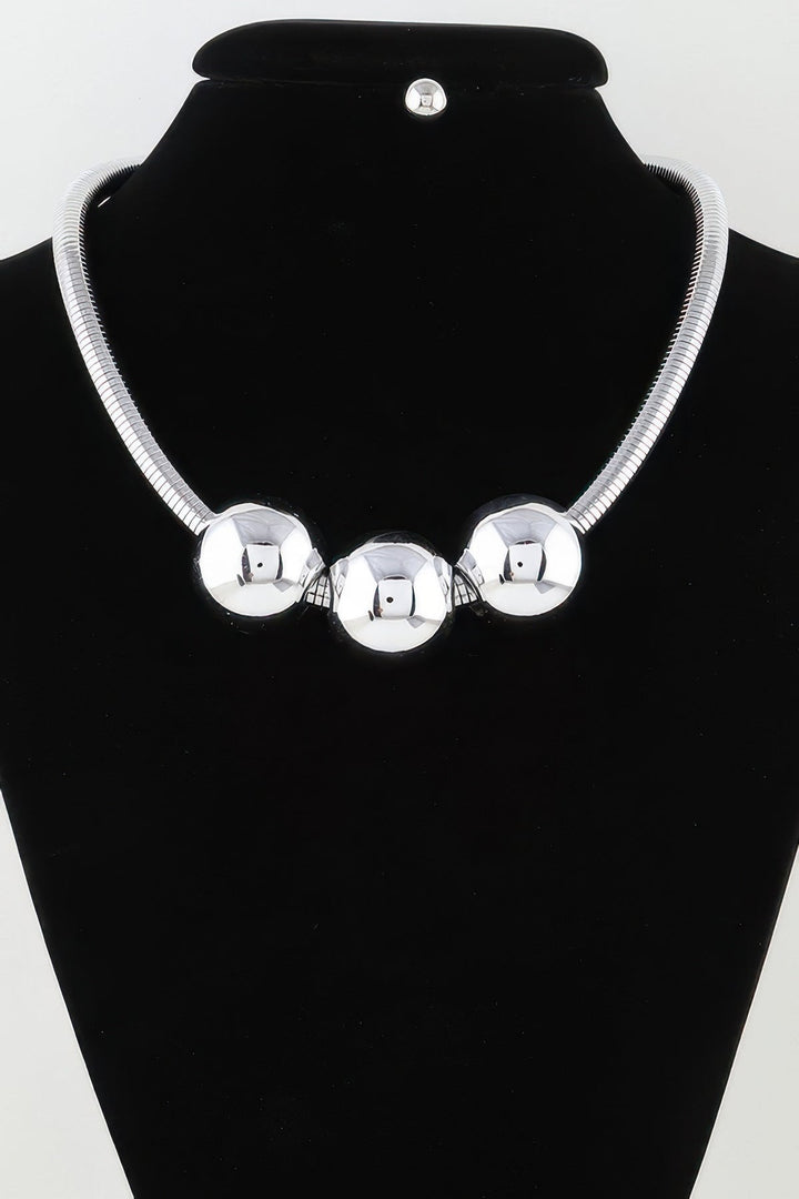 Product Description: Turn heads with the Triple Shiny Bead Statement Necklace, a striking piece designed to bring bold elegance to any outfit. Featuring three radiant beads, this necklace captures the perfect balance of modern sophistication and timeless charm. Crafted with attention to detail, it shines beautifully and adds instant impact to both casual and formal looks. Lightweight and easy to style, it’s an essential addition to your jewelry collection. Make a confident statement with this eye-catching accessory. Product Details: Features three radiant, high-shine beads Approximate length: 16" Designed for a bold, sophisticated look Lightweight for comfortable, all-day wear Perfect for both everyday styling and special occasions Adds instant elegance and impact to any ensemble Size Guide: For accurate sizing guidance, please review our size chart available on the website. Shipping and Returns: Fast Shipping: We offer speedy delivery to your doorstep. Hassle-Free Returns: If you're not completely satisfied, our flexible return policy ensures your peace of mind. Triple Shiny Bead Statement Necklace