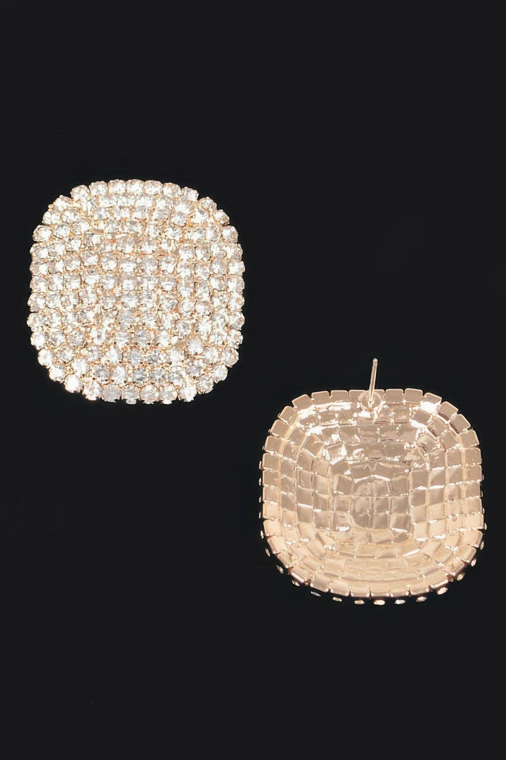 Product Description: Illuminate your look with the Glimmering Earrings, a refined pair of rhinestone studs designed to shine from every angle. Expertly crafted with shimmering crystals, these earrings catch and reflect light with every movement, offering a radiant finish that enhances any ensemble. The sleek, gold-tone setting adds a touch of sophistication, while the elegant silhouette makes them perfect for both day and evening wear. Lightweight and timeless, these earrings bring just the right amount of sparkle to elevate your style effortlessly. Product Details: Set with shimmering rhinestones for a luminous effect Approx. 1.35" x 1.5" — ideal for statement yet wearable style Gold-tone finish adds warmth and elegance Lightweight design for comfortable all-day wear Perfect for formal events, celebrations, or adding glam to everyday outfits A versatile and sophisticated addition to your jewelry collection Size Guide: For accurate sizing guidance, please review our size chart available on the website. Shipping and Returns: Fast Shipping: We offer speedy delivery to your doorstep. Hassle-Free Returns: If you're not completely satisfied, our flexible return policy ensures your peace of mind. Rhinestone Stud Earring