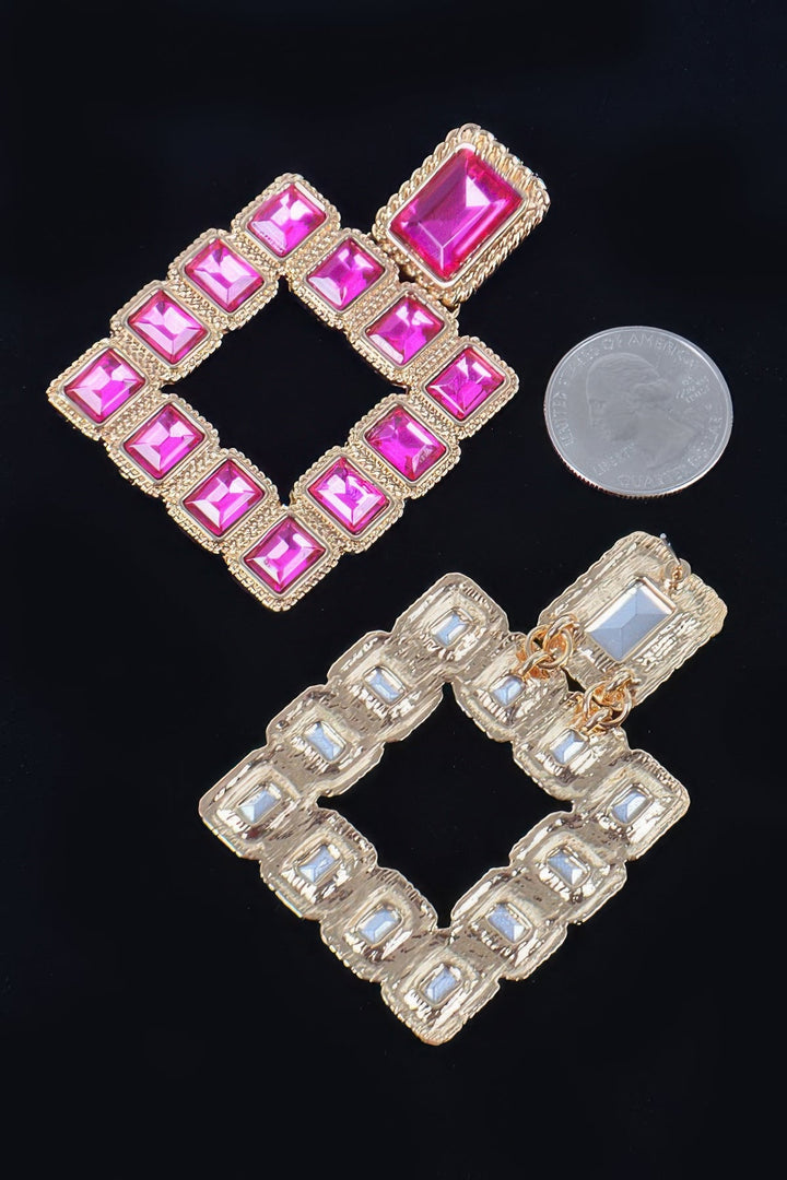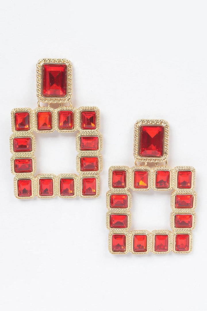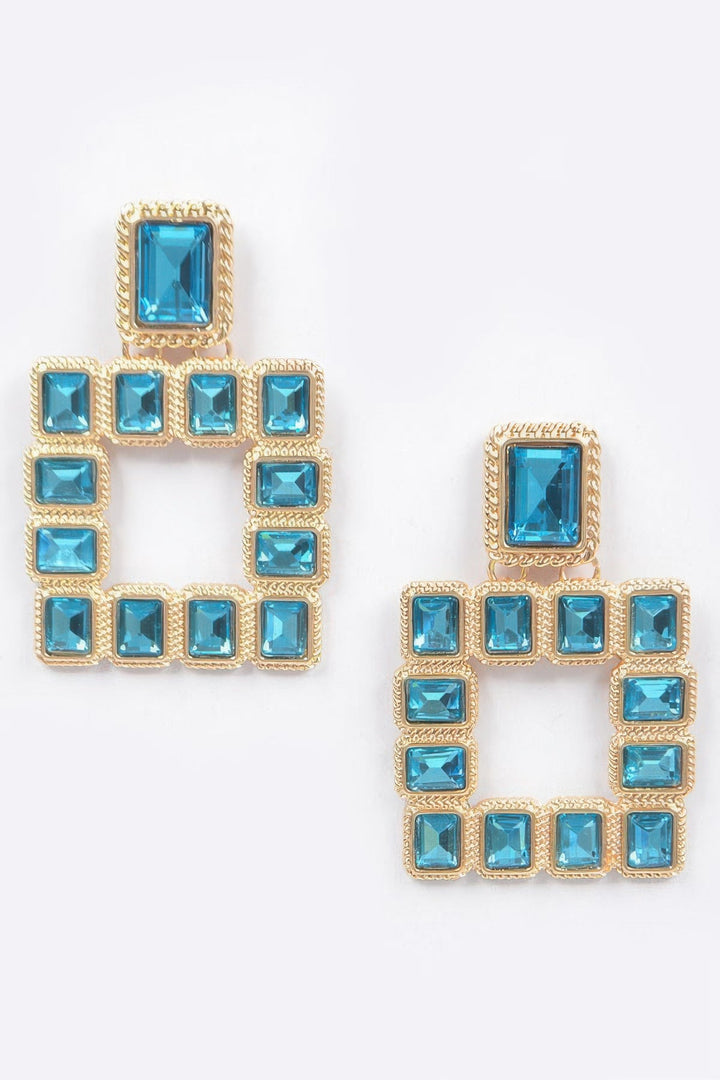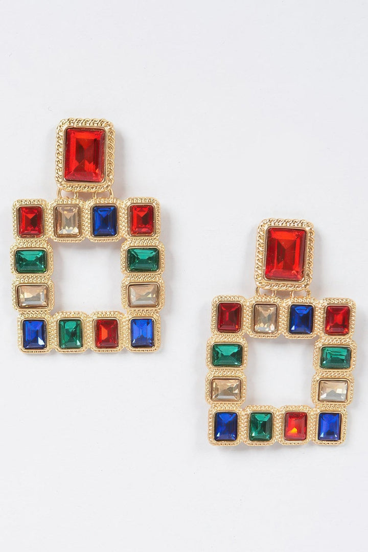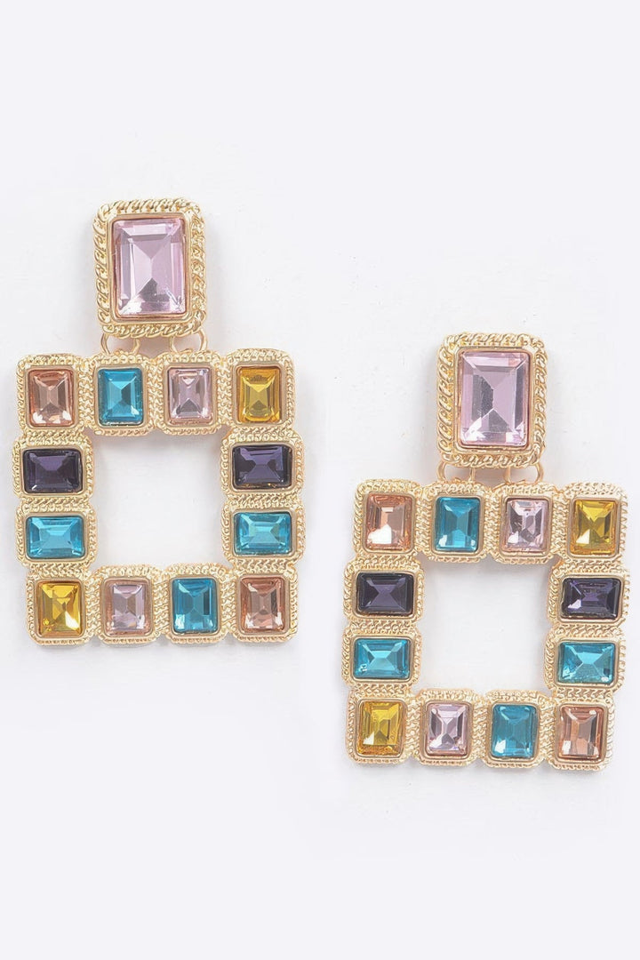 Product Description: Step into refined glamour with the Golden Crystal Square Elegance earrings, a bold yet sophisticated accessory designed to turn heads. Featuring a striking arrangement of multi square-shaped gemstones, these earrings blend modern structure with radiant sparkle. Each crystal catches the light beautifully, while the gold-tone setting adds warmth and luxury to the design. With their elongated silhouette and statement-making presence, they’re perfect for adding high-impact shine to both formal and elevated everyday looks. Designed for those who appreciate standout style with polished elegance. Product Details: Features multiple square-cut crystals in a bold geometric layout Approx. 1.6" x 2.5" — statement size with elegant proportions Gold-tone finish enhances the luxurious appeal Lightweight construction for comfortable, extended wear Ideal for formal events, parties, or high-style everyday looks A modern, eye-catching addition to any jewelry collection Size Guide: For accurate sizing guidance, please review our size chart available on the website. Shipping and Returns: Fast Shipping: We offer speedy delivery to your doorstep. Hassle-Free Returns: If you're not completely satisfied, our flexible return policy ensures your peace of mind. Multi Square Gemstone Earrings