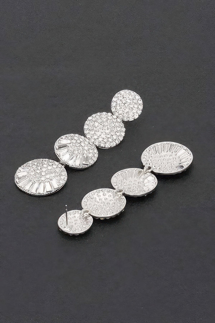 Product Description: Add a touch of brilliance to your look with the Radiant Circle Earrings—a stunning blend of elegance and shine. Measuring approximately 1" x 3.5", these striking earrings feature a bold circular design embellished with dazzling crystal stones that catch the light from every angle. Their elongated silhouette creates a graceful, eye-catching effect perfect for both formal occasions and elevated everyday wear. Lightweight yet statement-making, these earrings bring a refined sparkle to any ensemble. Product Details: Approximate dimensions: 1" x 3.5" Features a circular design adorned with crystal stones Radiant tone finish for a polished, elegant look Lightweight construction for comfortable wear Ideal for special events, parties, or stylish daily outfits Secured with post-back closures for a secure fit Size Guide: For accurate sizing guidance, please review our size chart available on the website. Shipping and Returns: Fast Shipping: We offer speedy delivery to your doorstep. Hassle-Free Returns: If you're not completely satisfied, our flexible return policy ensures your peace of mind. Rhinestone Earring