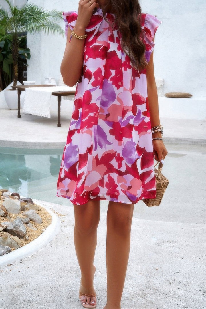 Product Description: This floral print elegant sleeveless ruffle A-line dress is the perfect choice for adding a touch of romance to your wardrobe. Made from 100% polyester, it features a lightweight, flowing silhouette that’s comfortable and flattering. The beautiful floral print and delicate ruffle detailing give this dress a soft, feminine look, while the sleeveless design keeps you cool and confident. With its A-line cut, this dress flatters your figure effortlessly, making it ideal for casual outings, vacation days, or school gatherings. Pair it with sandals for a laid-back feel or dress it up with heels for a polished look. Product Details: Material: 100% polyester for lightweight comfort Floral print for a fresh, romantic touch Sleeveless design perfect for warm weather Ruffle details add a delicate, feminine finish A-line silhouette flatters all body shapes Suitable for casual outings, vacations, or everyday wear Size Guide: For accurate sizing guidance, please review our size chart available on the website. Shipping and Returns: Fast Shipping: We offer speedy delivery to your doorstep. Hassle-Free Returns: If you're not completely satisfied, our flexible return policy ensures your peace of mind. Floral Print Elegant Sleeveless Ruffle A Line Dress