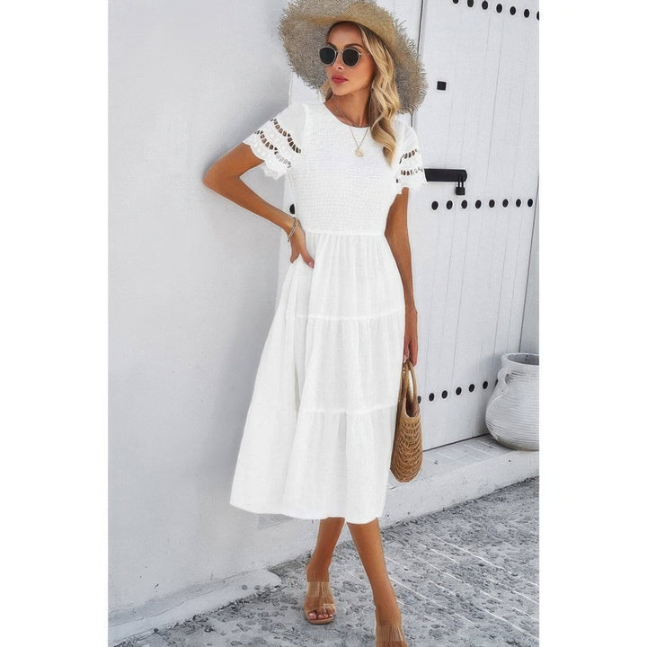 Product Description: Feminine and flattering, this Lace Round Neck Ruched Fit Ruffle Solid Dress is designed to elevate your everyday style with subtle elegance. Featuring a delicate lace round neckline and soft ruching along the bodice, it contours your shape while maintaining a comfortable fit. The ruffle detailing adds movement and charm, making it an ideal choice for everything from casual outings to weekend getaways. Crafted from a smooth polyester-elastane blend, this dress offers stretch, durability, and all-day ease in a solid, versatile hue. Product Details: Made from 98% Polyester, 2% Elastane for soft stretch and structure Lace round neckline adds a romantic, refined touch Ruched bodice offers a flattering, body-enhancing fit Ruffle accents bring movement and feminine detail Solid color makes it easy to accessorize for various occasions Suitable for daily wear, casual events, or vacations Size Guide: For accurate sizing guidance, please review our size chart available on the website. Shipping and Returns: Fast Shipping: We offer speedy delivery to your doorstep. Hassle-Free Returns: If you're not completely satisfied, our flexible return policy ensures your peace of mind. Lace Round Neck Ruched Fit Ruffle Solid Dress