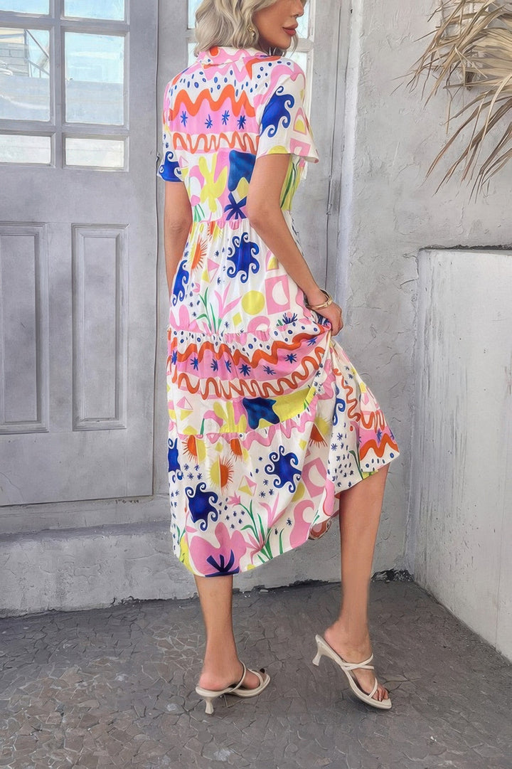 Product Description: Chic and easygoing, this allover printed long dress is designed to flow effortlessly from day to evening. Made from a soft blend of lyocell and viscose, it drapes beautifully while remaining light and breathable. The button-down front adds a classic touch, while the ruched detailing enhances the fit with subtle texture and shape. Its long, graceful silhouette is balanced by the playful print, creating a perfect mix of comfort and polish. Ideal for vacation days, casual outings, or weekend strolls, this dress is an easy favorite for warmer seasons. Product Details: Crafted from 30% lyocell and 70% viscose for soft, breathable wear Allover print adds a lively, eye-catching finish Button-down front provides a classic, versatile detail Ruched accents offer flattering texture and fit Long length creates an elegant, easy silhouette Suitable for daily wear, travel, or casual events Size Guide: For accurate sizing guidance, please review our size chart available on the website. Shipping and Returns: Fast Shipping: We offer speedy delivery to your doorstep. Hassle-Free Returns: If you're not completely satisfied, our flexible return policy ensures your peace of mind. Allover Printed Button Down Ruched Long Dress