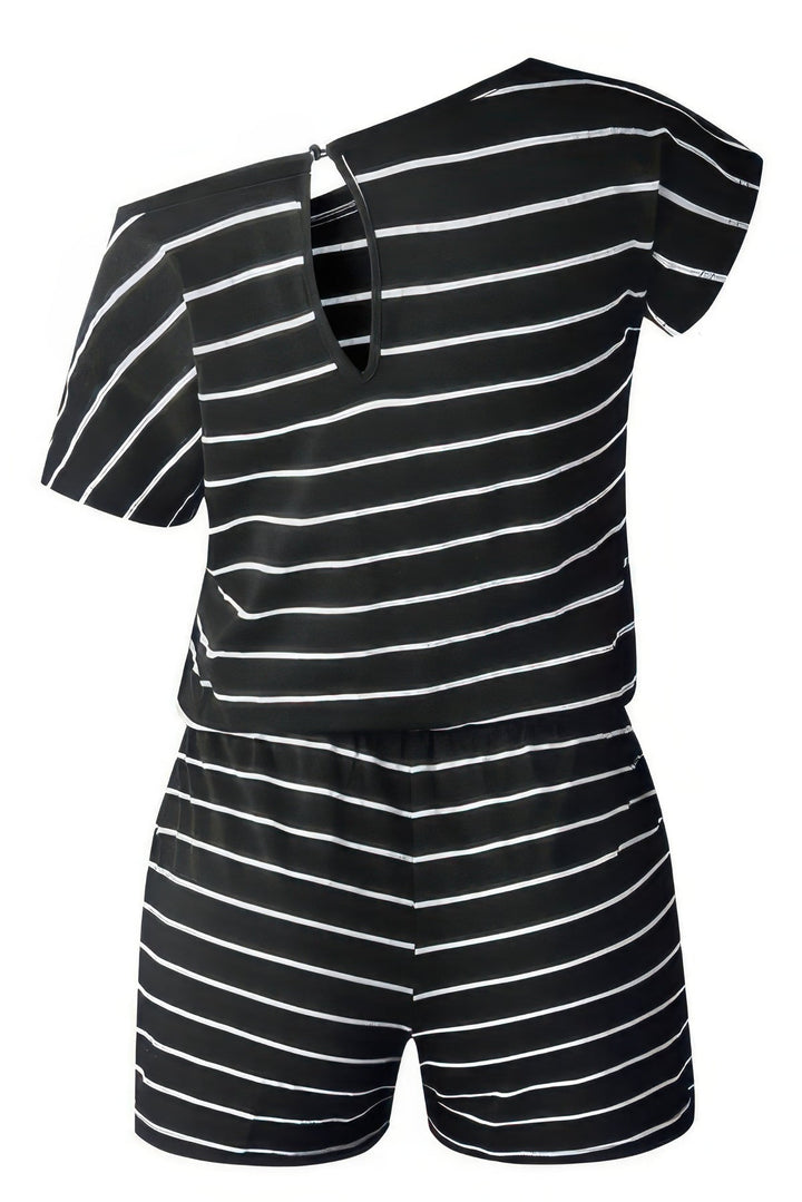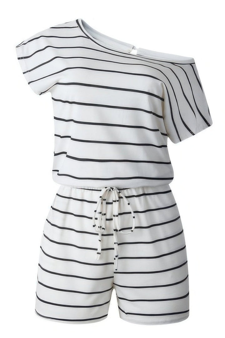 Striped Short Sleeve Drawstring Waist Romper