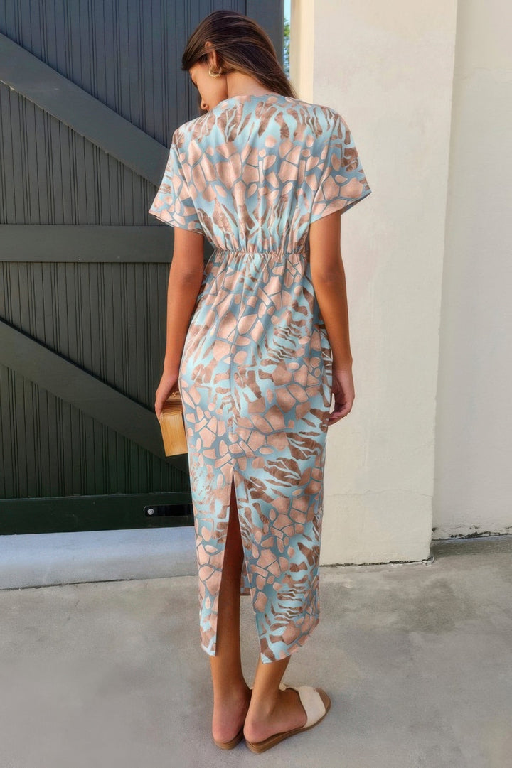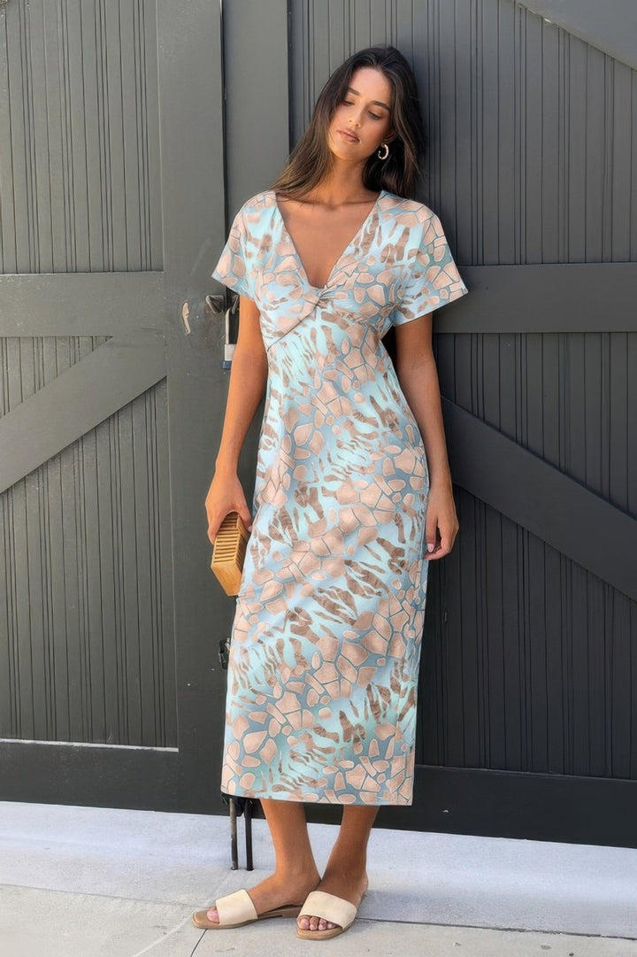 Geometric Print Twist Design Short Sleeve Fit Dress