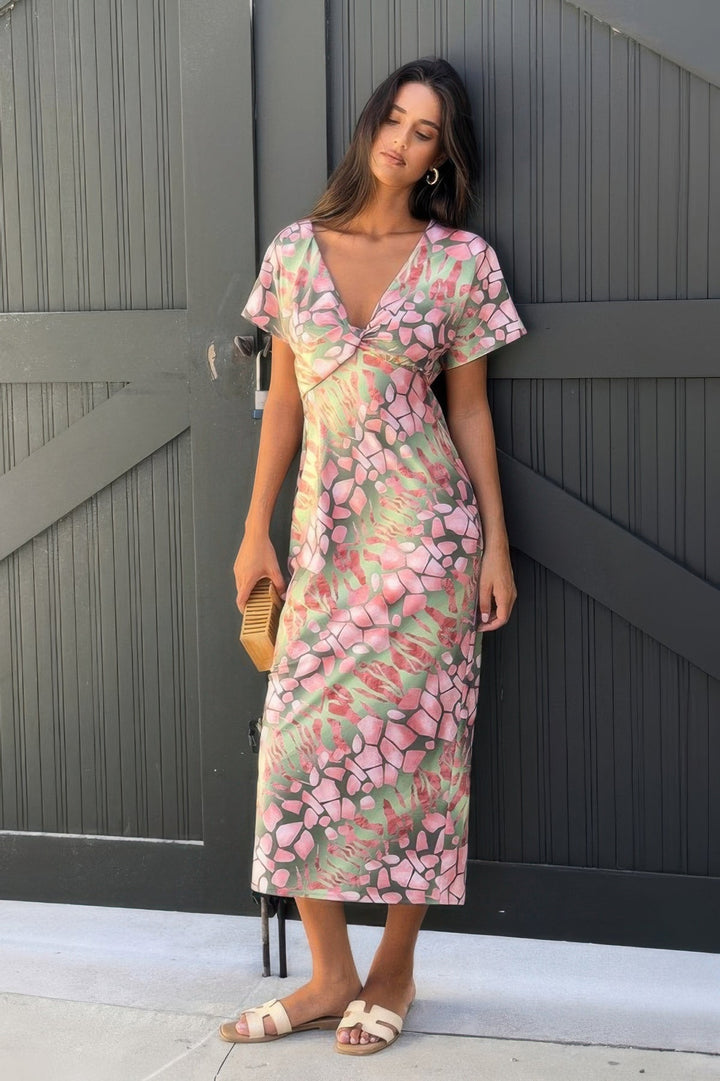 Product Description: Bring a modern edge to your wardrobe with this geometric print dress, designed with a unique twist-front detail and flattering fit. The short sleeves and fitted silhouette create a sleek, streamlined shape, while the eye-catching pattern adds bold personality. Crafted from a soft blend of polyester and elastane, it offers stretch and comfort for all-day wear. Perfect for dressing up or down, this dress transitions effortlessly from daytime plans to evening outings. It’s a standout piece that’s both stylish and easy to wear. Product Details: Made from 95% Polyester and 5% Elastane for soft stretch and a smooth finish Features a bold geometric print for a modern, graphic look Twist-front design adds flattering shape and visual interest Short sleeves and fitted silhouette offer a polished appearance Ideal for casual events, workdays, or going out Comfortable fabric allows for all-day movement and wear Size Guide: For accurate sizing guidance, please review our size chart available on the website. Shipping and Returns: Fast Shipping: We offer speedy delivery to your doorstep. Hassle-Free Returns: If you're not completely satisfied, our flexible return policy ensures your peace of mind. Geometric Print Twist Design Short Sleeve Fit Dress