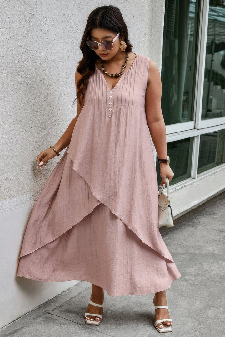 Product Description: Elegant and easy to wear, this plus-size sleeveless dress features a flattering wrap silhouette with a notched neckline and soft drape. Made from a viscose-rich blend, it’s designed to keep you comfortable while offering a refined, breathable feel. The loose fit creates effortless movement, making it a versatile choice for casual wear or warm-weather occasions. Product Details: Made from 85% Viscose, 10% Polyester, 5% Polyamide Notched neckline for modern, structured detail Sleeveless wrap design for a breezy, flattering fit Soft, breathable fabric keeps you cool and comfortable Loose silhouette allows for ease of movement Ideal for daily wear, vacations, or laid-back weekends Size Guide: For accurate sizing guidance, please review our size chart available on the website. Shipping and Returns: Fast Shipping: We offer speedy delivery to your doorstep. Hassle-Free Returns: If you're not completely satisfied, our flexible return policy ensures your peace of mind. Solid Plus Notched Neck Wrap Sleeveless Loose Dress