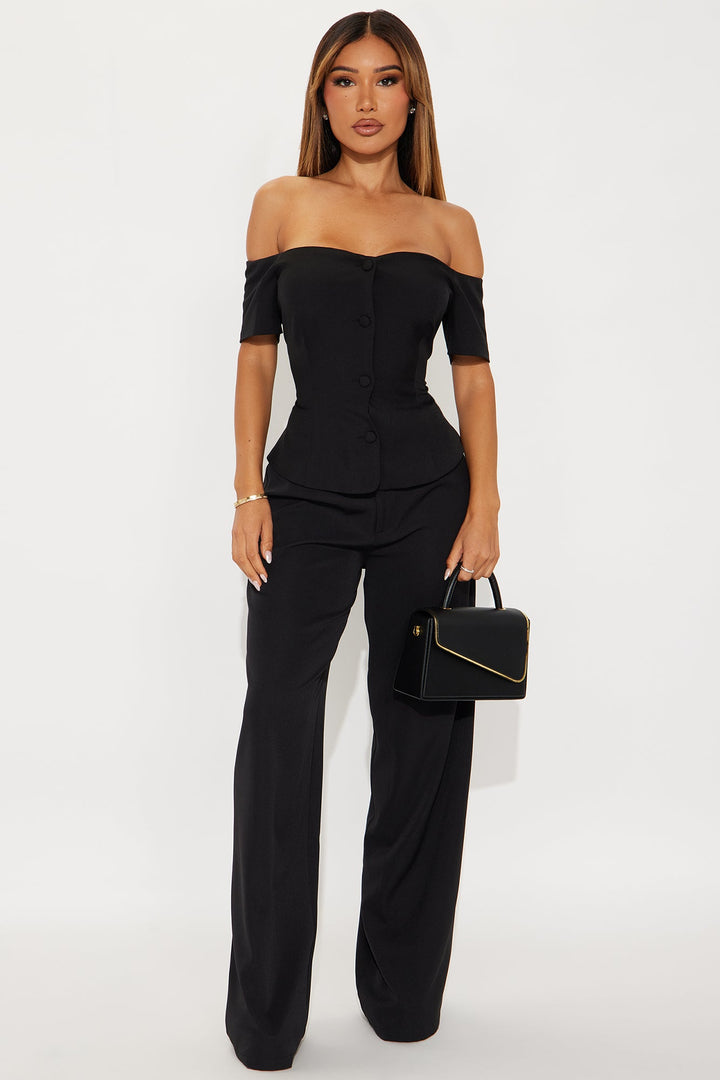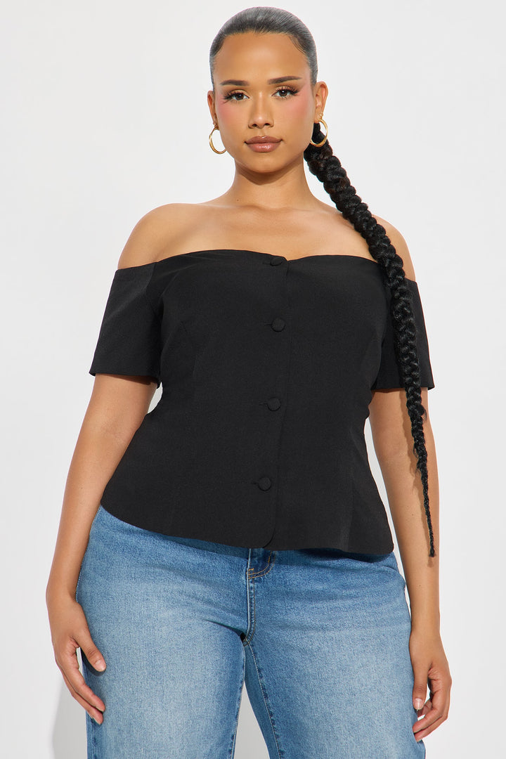 Available In Black And White. | Blouse | Off Shoulder | Button Up | Peplum Hem | Fully Lined | Non Stretch | Shell: 98%Polyester 2%Spandex | Lining: 100%Polyester | Imported