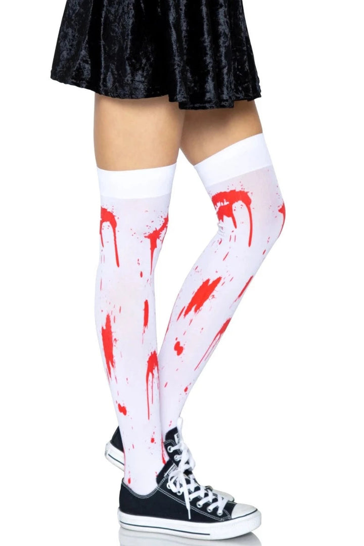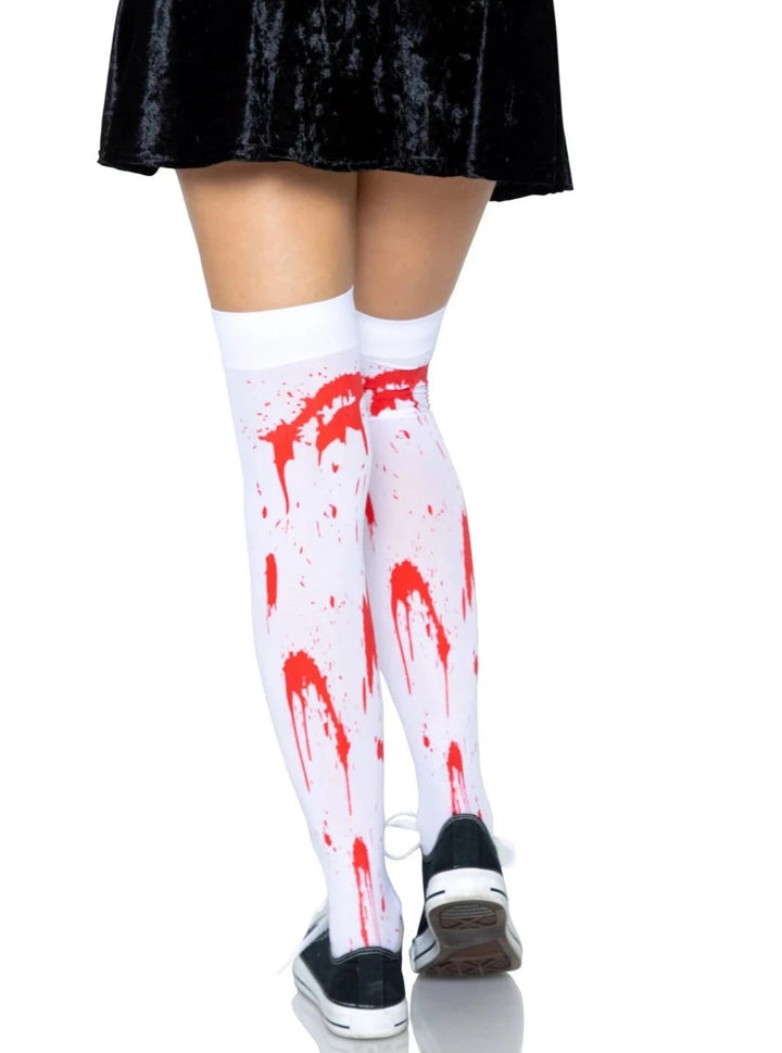 These spooky halloween stockings are blood spattered for a painlessly gory look. Wear them out on a cold halloween night to complete your zombie costume!