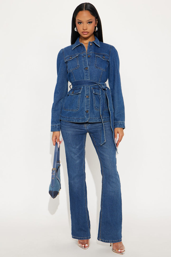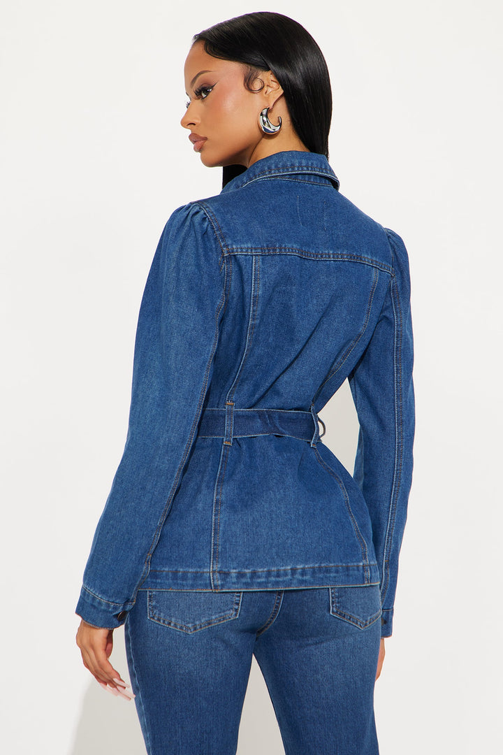 Why So Serious Belted Denim Jacket  - Dark Wash