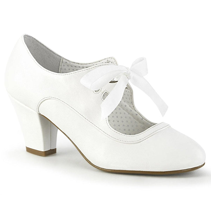 2 1/2"" (65mm) Cuben Heel Mary Jane Pump w/Ribbon Tie & Heart Cutout Detail
