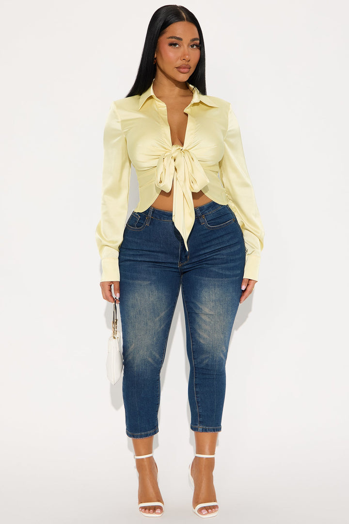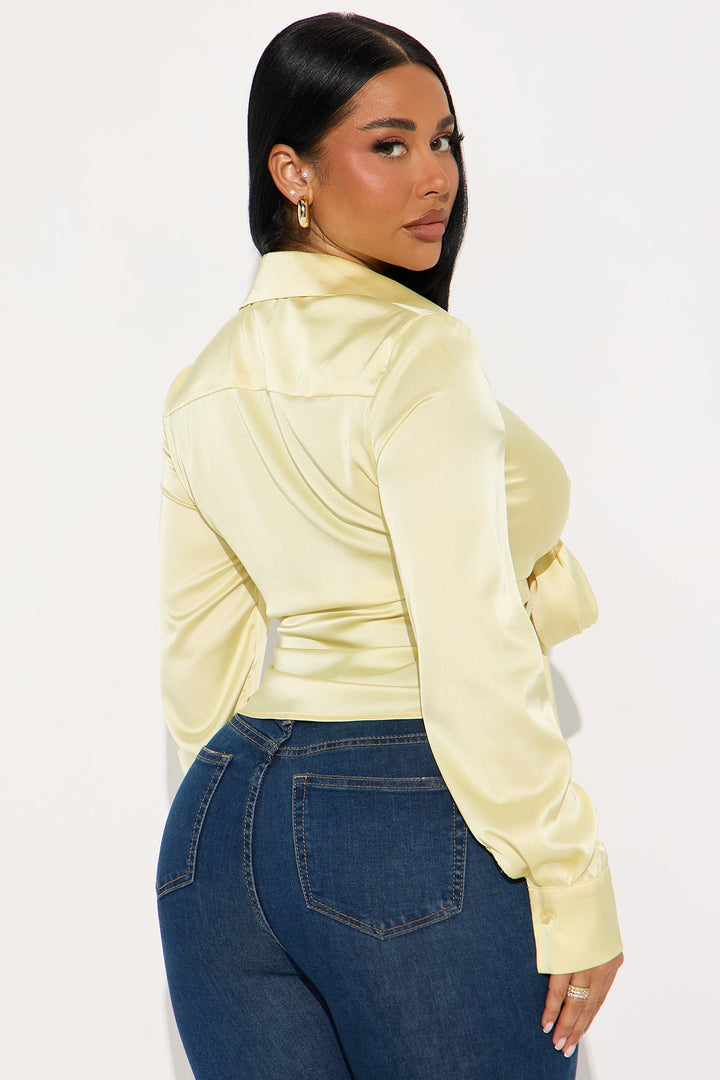 Wild Child Knotted Satin Blouse - Butter Yellow