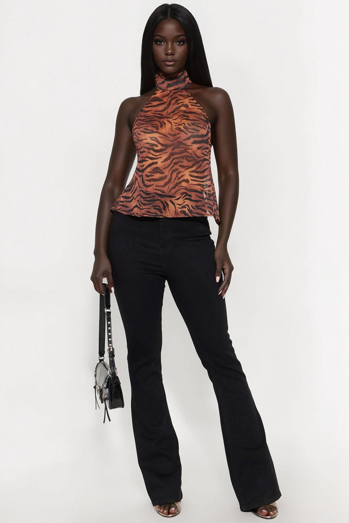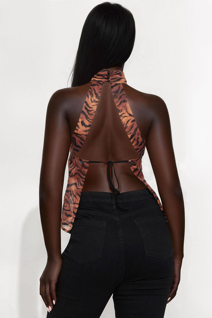 Wild Moment Tiger Print Chiffon Halter Top - Brown/combo