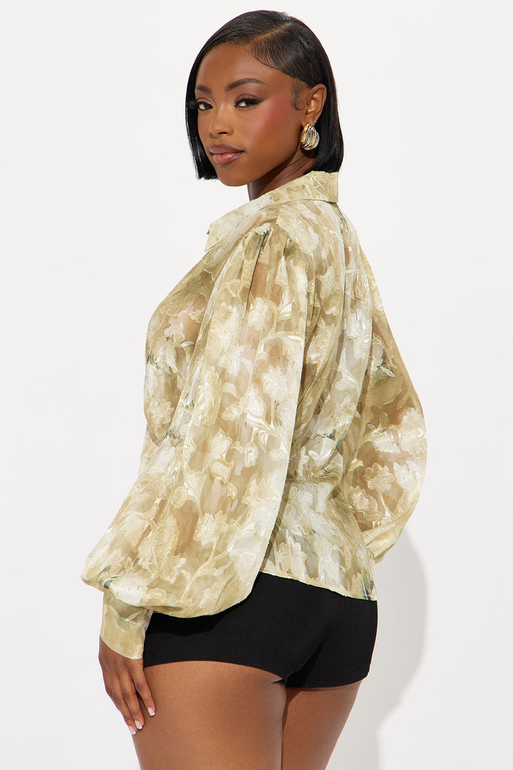 Wildflower Energy Floral Chiffon Shirt - Sand/combo