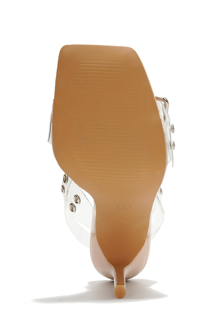 WINONAH - CLEAR - HEELS by CAPE ROBBIN Stiletto heel: 4-inch Sling back PU Leather insole with memory foam cushioning for added comfort Double buckle straps Square toe The Winonah heels feature bold double buckle straps with silver eyelet details, adding a daring and edgy touch to your look. Perfect for a night out, these heels pair effortlessly with both casual and formal outfits. Available in bold red, chic leopard print, and modern clear, these heels are a must-have for any fashion-forward wardrobe.