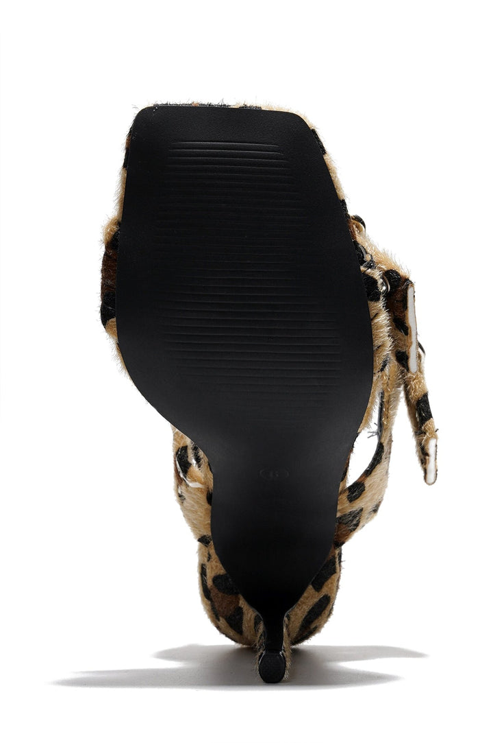 WINONAH - LEOPARD - HEELS by CAPE ROBBIN Stiletto heel: 4-inch Sling back PU Leather insole with memory foam cushioning for added comfort Double buckle straps Square toe The Winonah heels feature bold double buckle straps with silver eyelet details, adding a daring and edgy touch to your look. Perfect for a night out, these heels pair effortlessly with both casual and formal outfits. Available in bold red, chic leopard print, and modern clear, these heels are a must-have for any fashion-forward wardrobe.