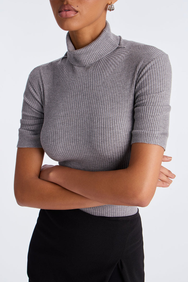 Winter Glow Turtle Neck Sweater Top - Heather Grey