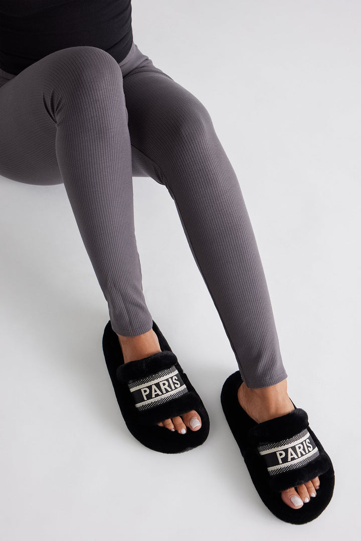 Witty Faux Fur Slippers - Black