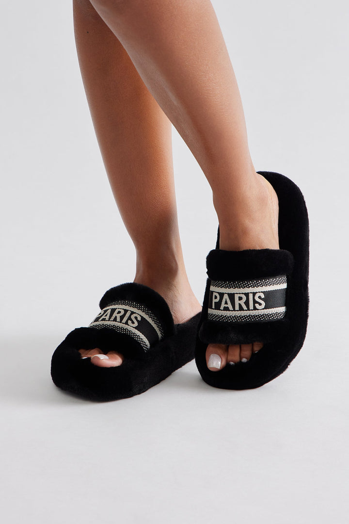 Available In Black. | Open Toe Slippers | Faux Fur | Round Toe | Flat Heel | Imported