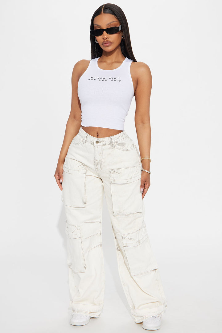 Women Don't Owe You Sh*t Ribbed Tank - White