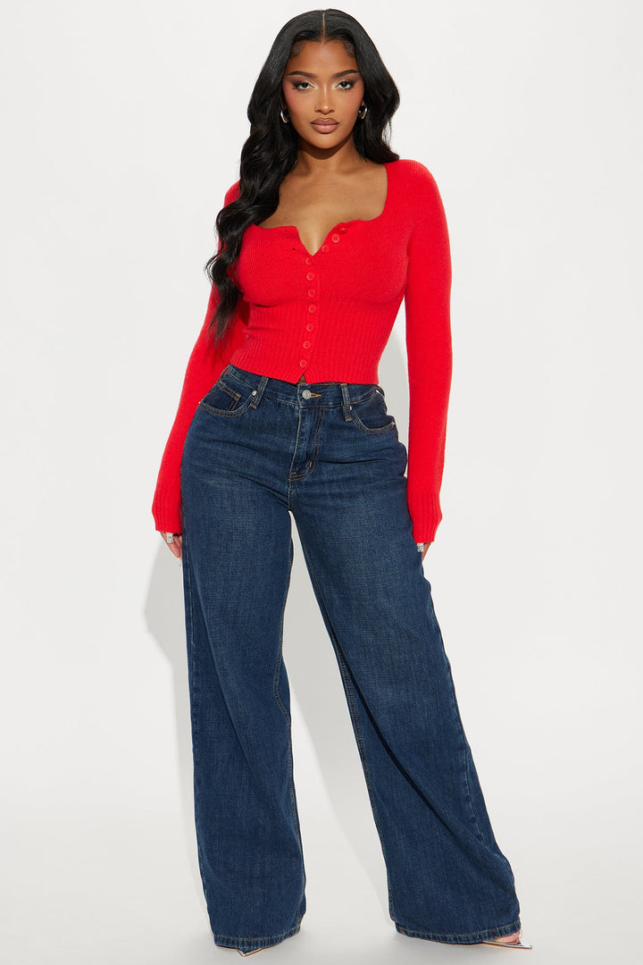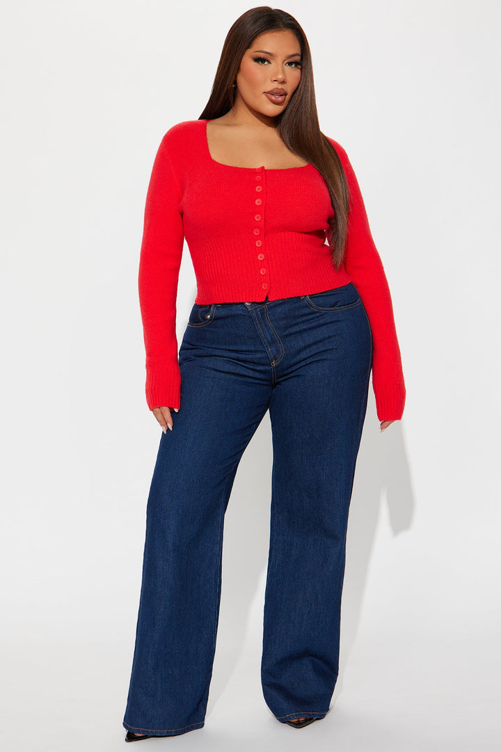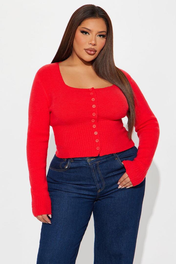 Available In Red. | Sweater Cardigan | Stretch | 72% Acrylic, 25% Nylon, 3% Elastane | Imported