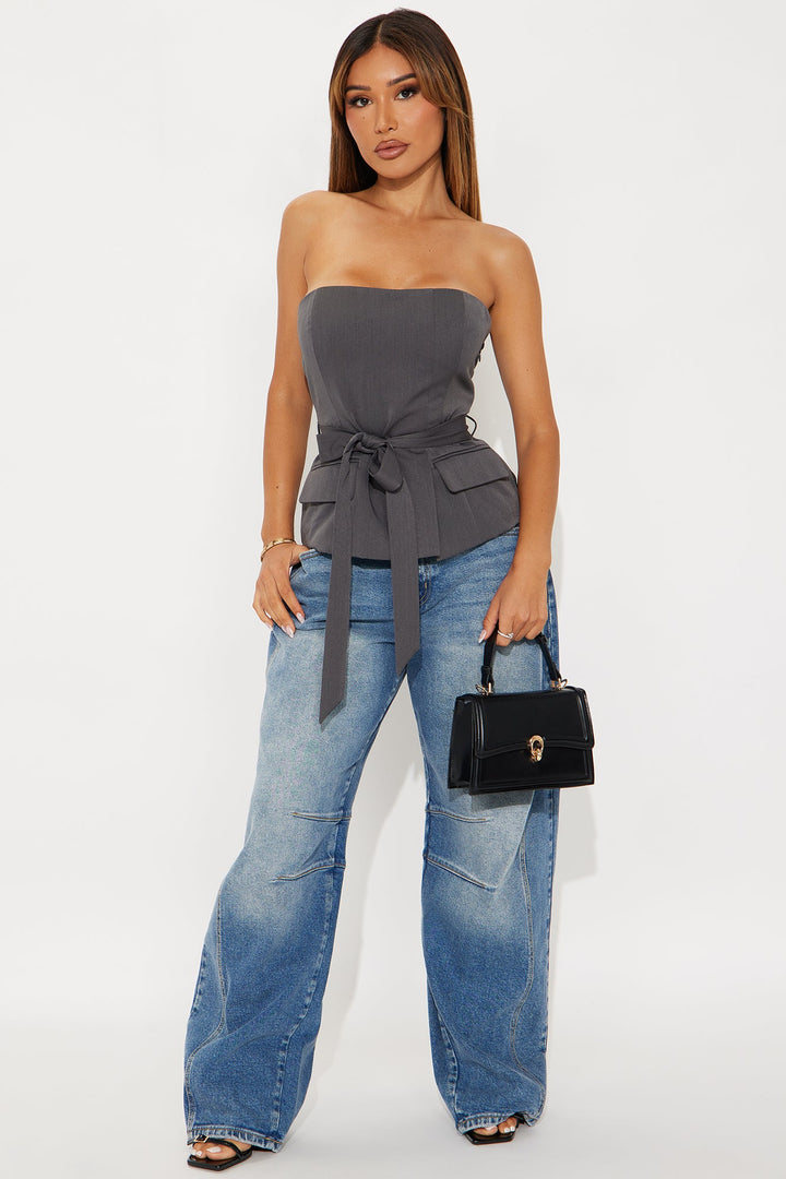 Available In Charcoal And Taupe. | Tube Top | Tie Front | Elastic Back | Fully Lined | Non Stretch | Shell: 96%Polyester 4%Spandex | Lining:100%Polyester | Imported