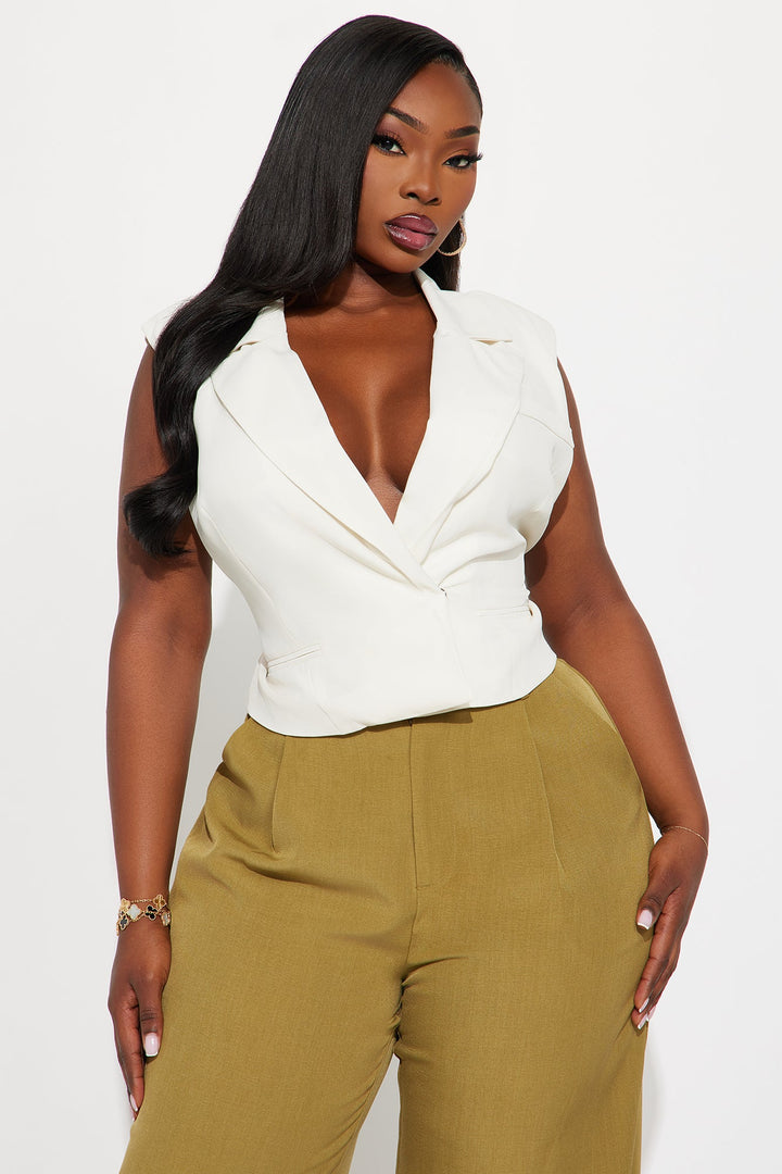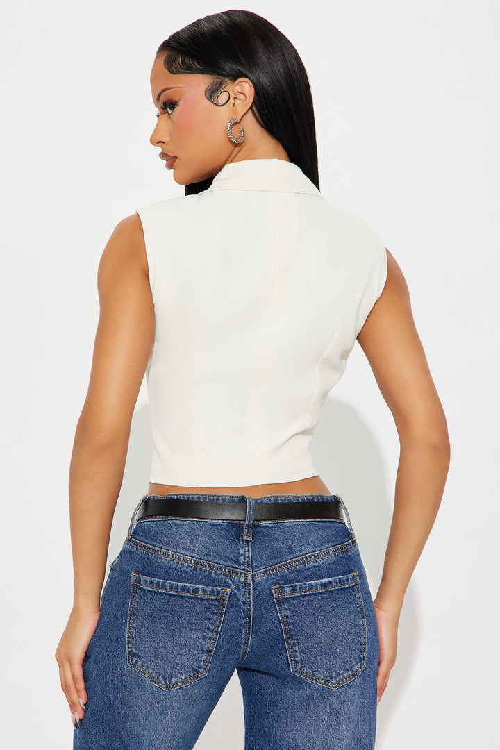 Available In Black And Cream. | Vest Top | Collar | Sleeveless | Crepe Woven | Cropped | Non Stretch | Self : 95% Polyester 5% Spandex | Imported