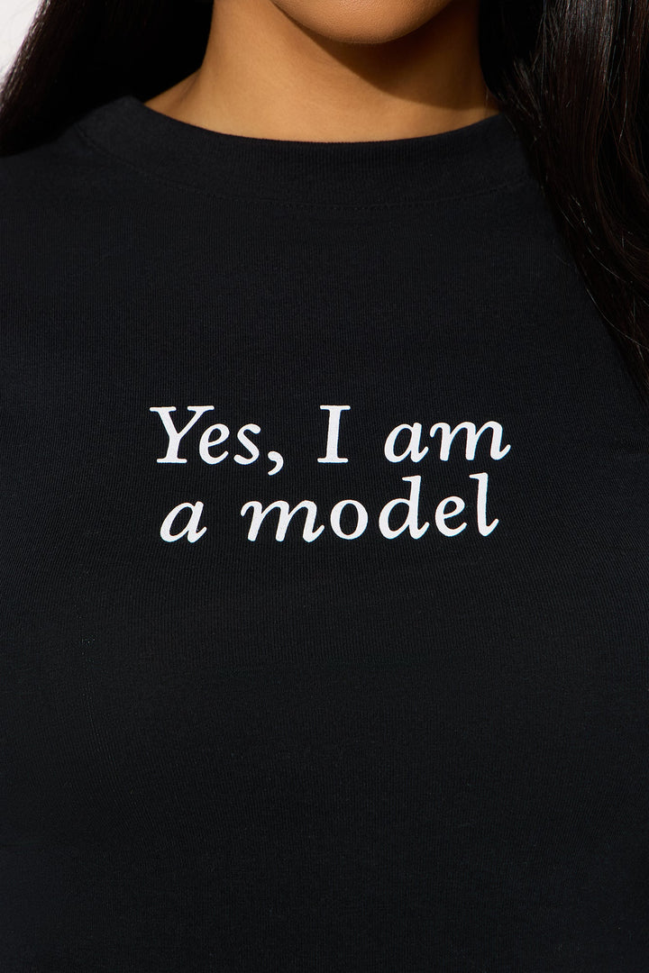 Yes I Am A Model Long Sleeve Baby Tee - Black