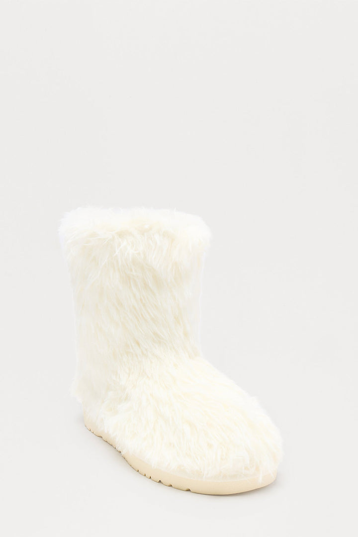 Available In Black, Chocolate, Cream And Nude. | Booties | Faux Fur | Round Toe | 2" Low Heel | Imported