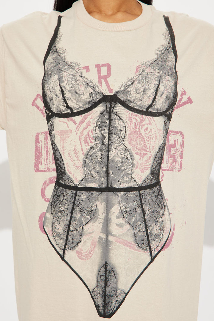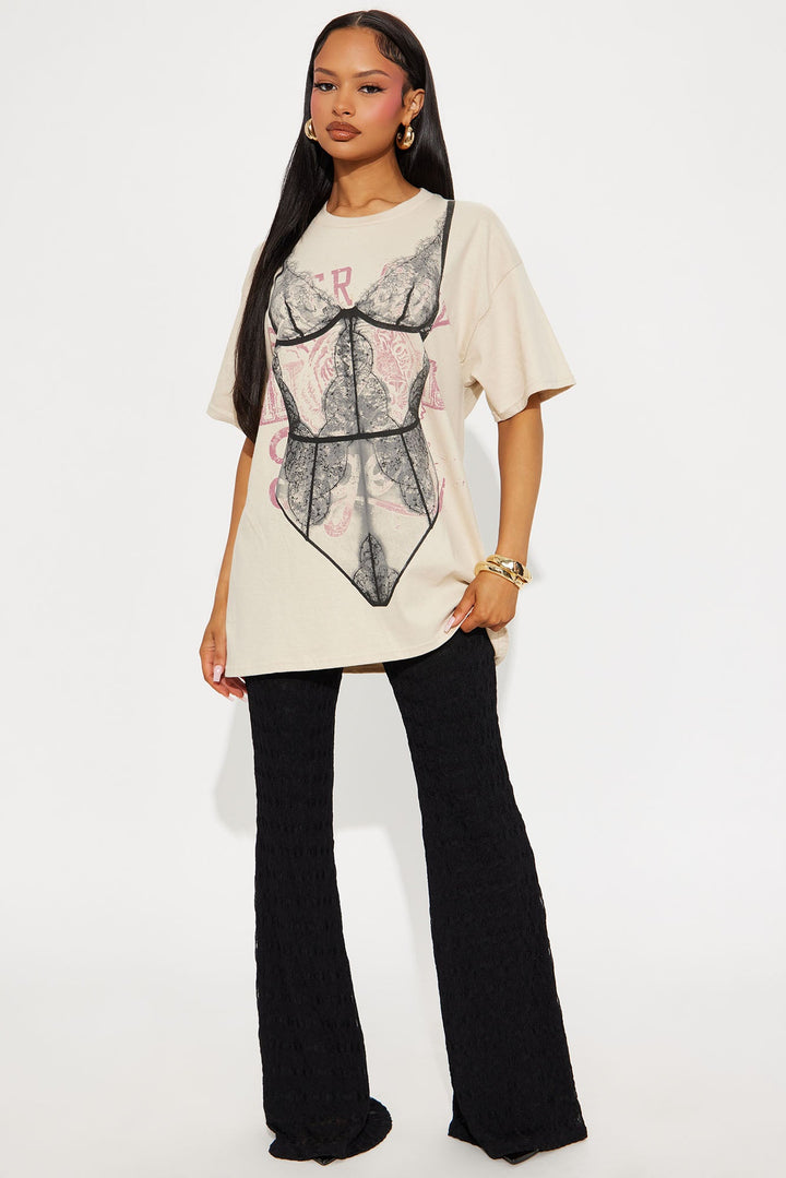 Available In Tan. | Oversized | Short Sleeve | Crew Neck | Front Screen | Stretch | 100% Cotton | Imported