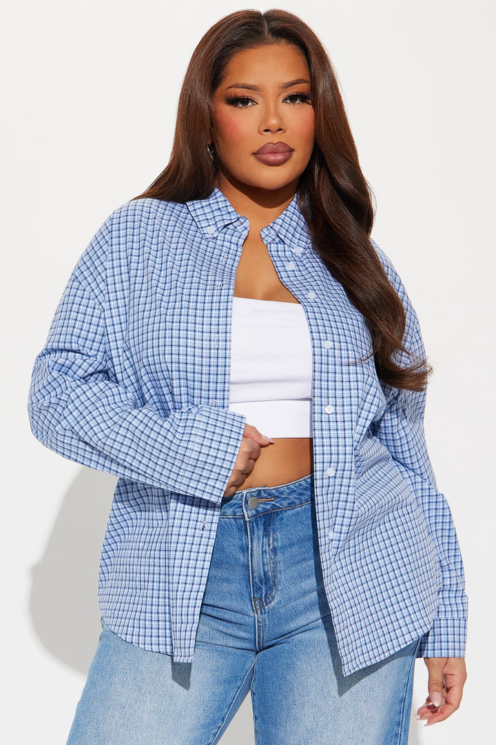 Your Boyfriends Oversized Plaid Shirt - Blue/combo