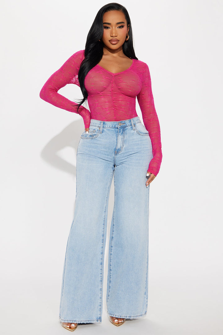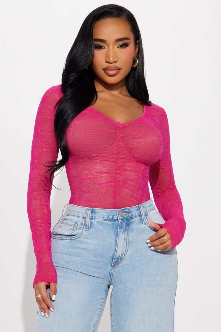 Your Prettiest Problem Lace Bodysuit - Fuchsia