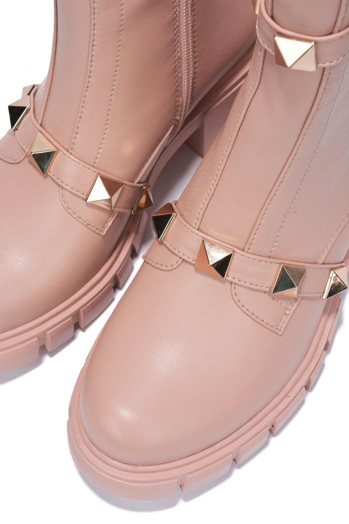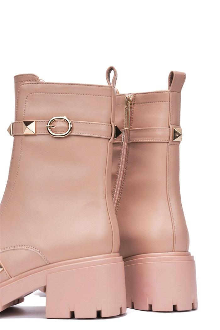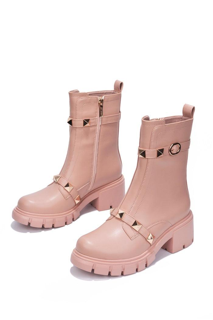 YURI - NUDE - BOOTIES by CAPE ROBBIN round toe lug platform booties zipper closure spike trim Make a bold fashion statement with these stylish Yuri platform booties! Featuring a spike trim detail for an edgy finish,these booties are the perfect addition to any outfit. Available in yellow,black,gray,and nude.