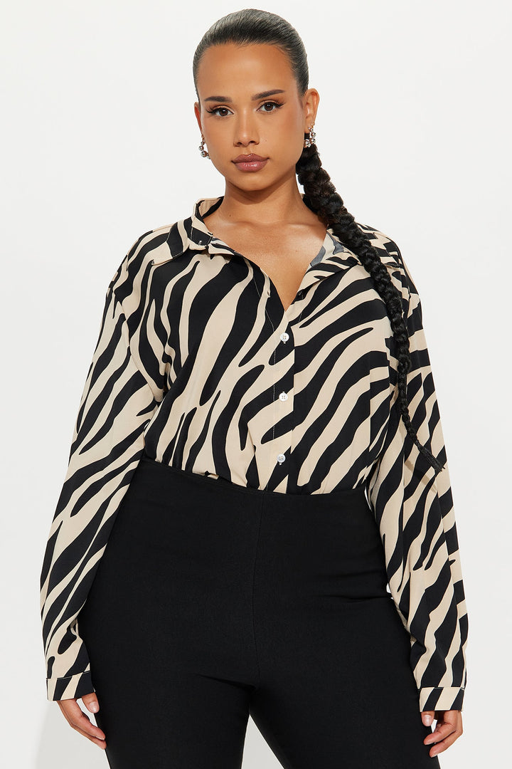 Zebra Fusion Satin Shirt - Ivory/combo