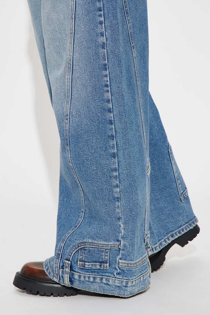 Zene Reconstructed Wide Leg Jeans - Medium Wash