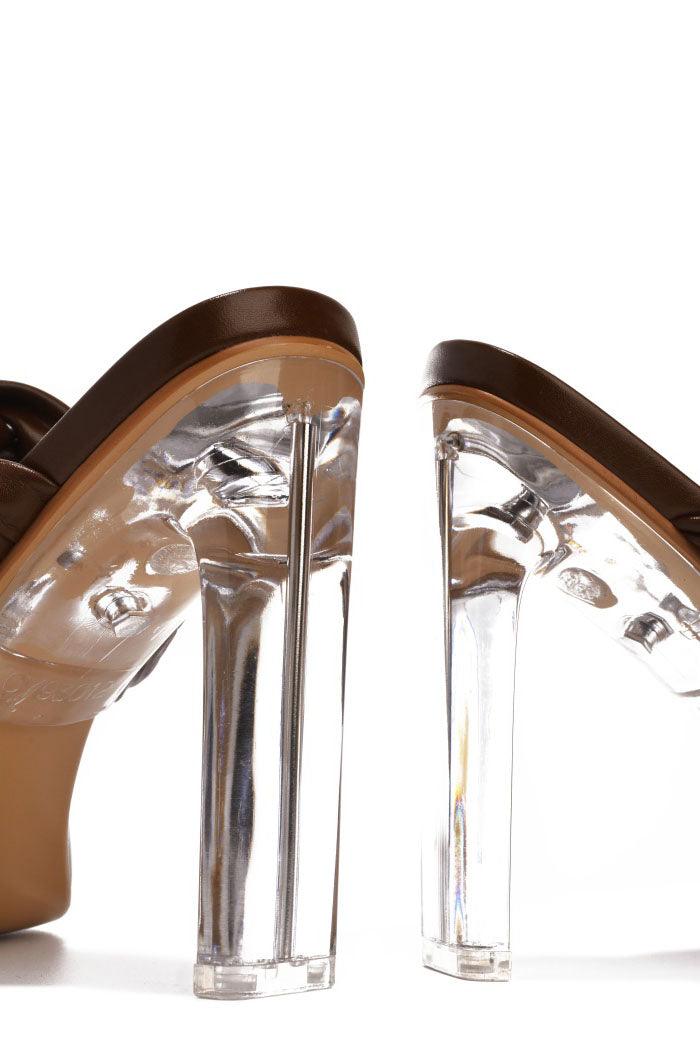 ZIMMER - BRONZE - HEELS by CAPE ROBBIN square toe block high heels clear finish cushioned insole Make a statement with these Zimmer block high heels! The sleek and stylish clear block heel is modern and chic,while the cushioned insole offers all-day comfort. These heels will keep you looking fabulous. Available in bronze,nude,and white.
