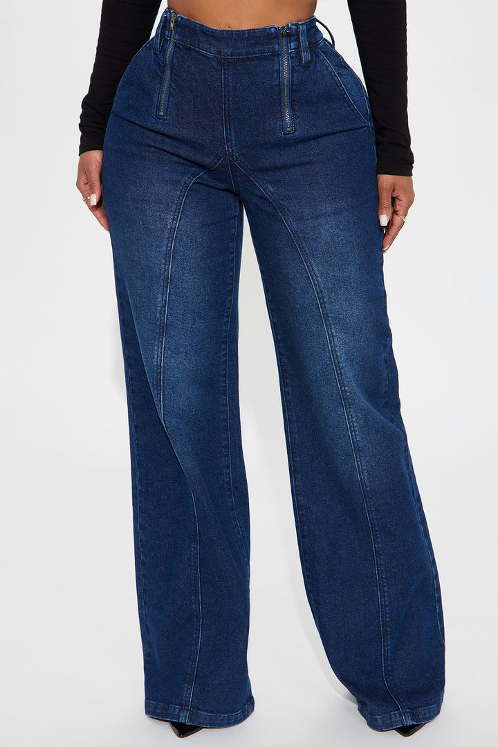 Zip It Up Wide Leg TrouserJeans - Dark Wash