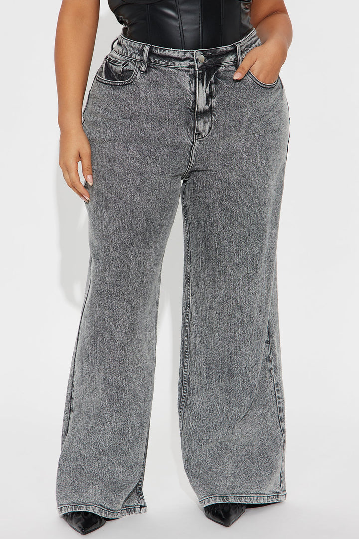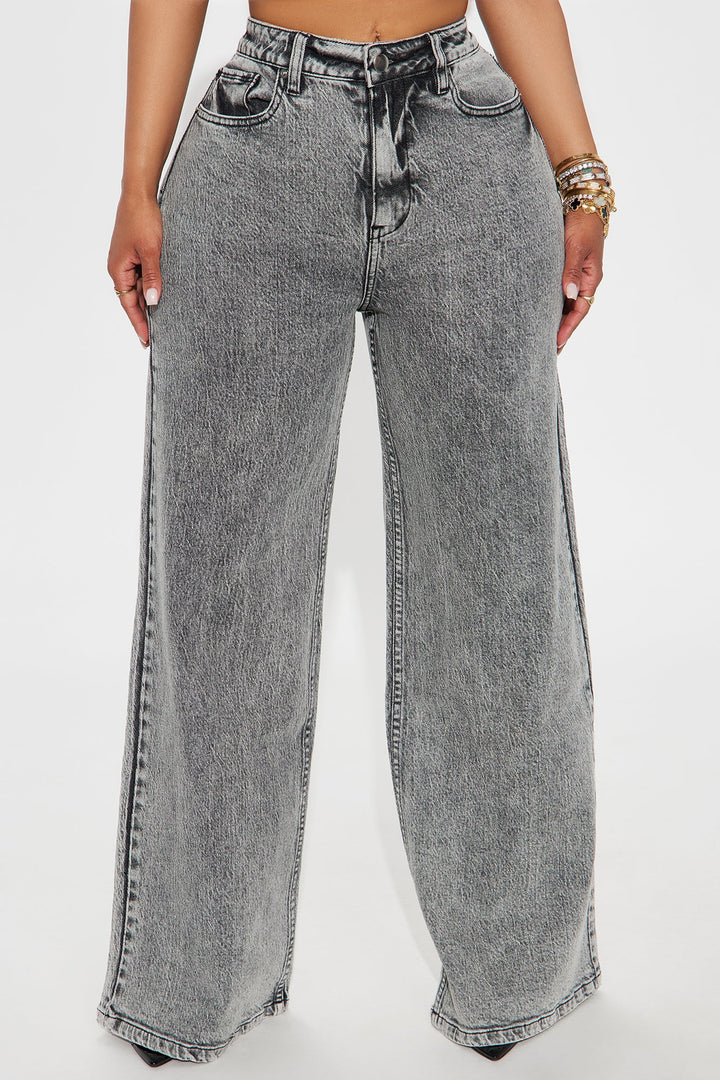 Zora Acid Wash Wide Leg Jeans - Acid Wash Grey